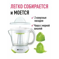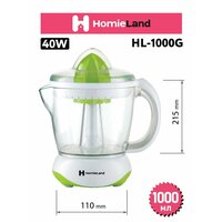 Соковыжималка электрическая HomieLand HL-1000G, 1000 мл, белая с зеленым.