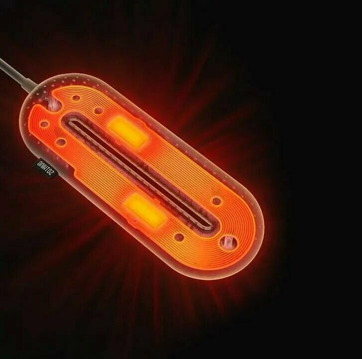 В мокрую и дождливую погоду очень легко промочить ноги, а это создает не только неприятные ощущения, но и угрожает здоровью. Электросушилка для обуви модель DSHJ-S-1904A , Zero-Shoes Dryer небольшое, но очень мощное устройство. Ваша обувь и носки просохнут очень быстро. Длинна шнура 130 см. В сушилку встроен нагревательный PTC-элемент. Простота дизайна и низкое энергопотребление обеспечивают экономичность данного устройства. Немаловажное свойство PTC-элементов – их пожаро- и взрывобезопасность. Температура ядра нагревательного элемента достигает 150°C, а поверхность поддерживает постоянную температуру равную 55°C. Данная температура убивает все микроорганизмы и не дает размножаться бактериям, вызывающим неприятный запах. Равномерное и быстрое высушивание Два нагревательных элемента размещены на двух концах кольцеобразной пластины, которая может равномерно рассеивать тепло, ускоряя испарение воды и заставляя влажную обувь быстро становиться сухой. Циркуляция горячего воздуха без "мертвых зон" Поверхность изделия снабжена 1532 отверстиями. Сушка равномерно просушивает подошву и верхнюю часть обуви, образуя циркуляцию горячего воздуха в замкнутом пространстве. Длинна шнура 130 см.