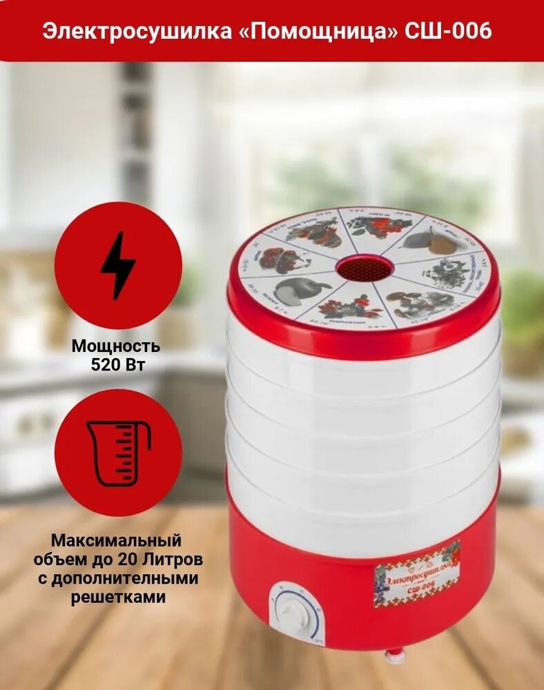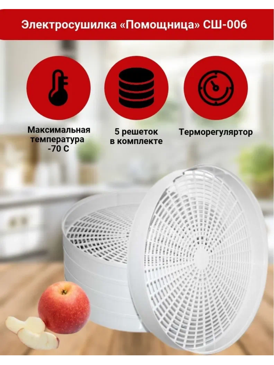 Купить Электрическая сушилка для овощей и фруктов ПОМОЩНИЦА СШ-006, 520 Вт с доставкой по всей России. Электрическая сушилка для овощей и фруктов ПОМОЩНИЦА СШ-006, 520 Вт: сравнение цен, характеристики, фото, актуальное наличие и цены.