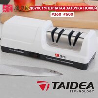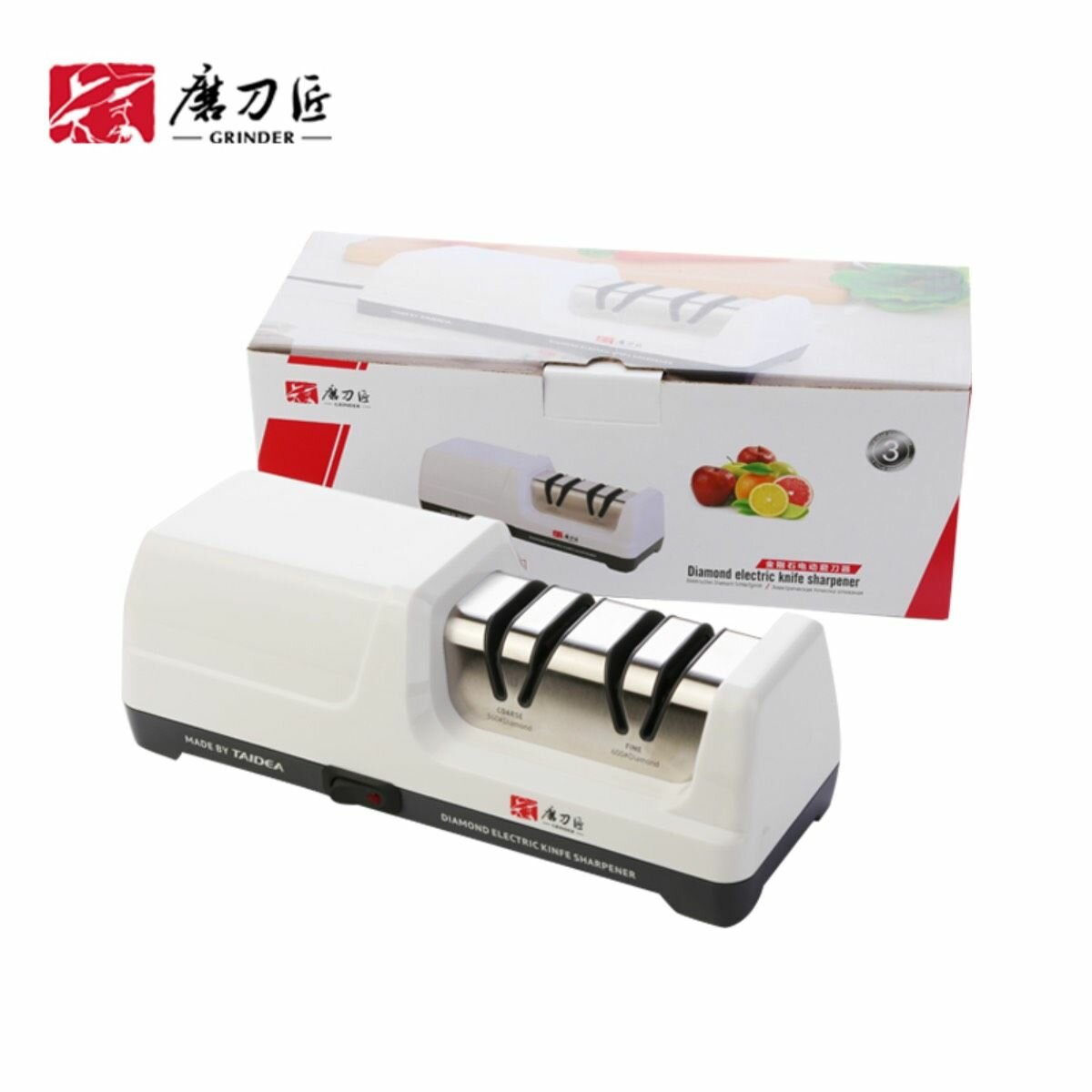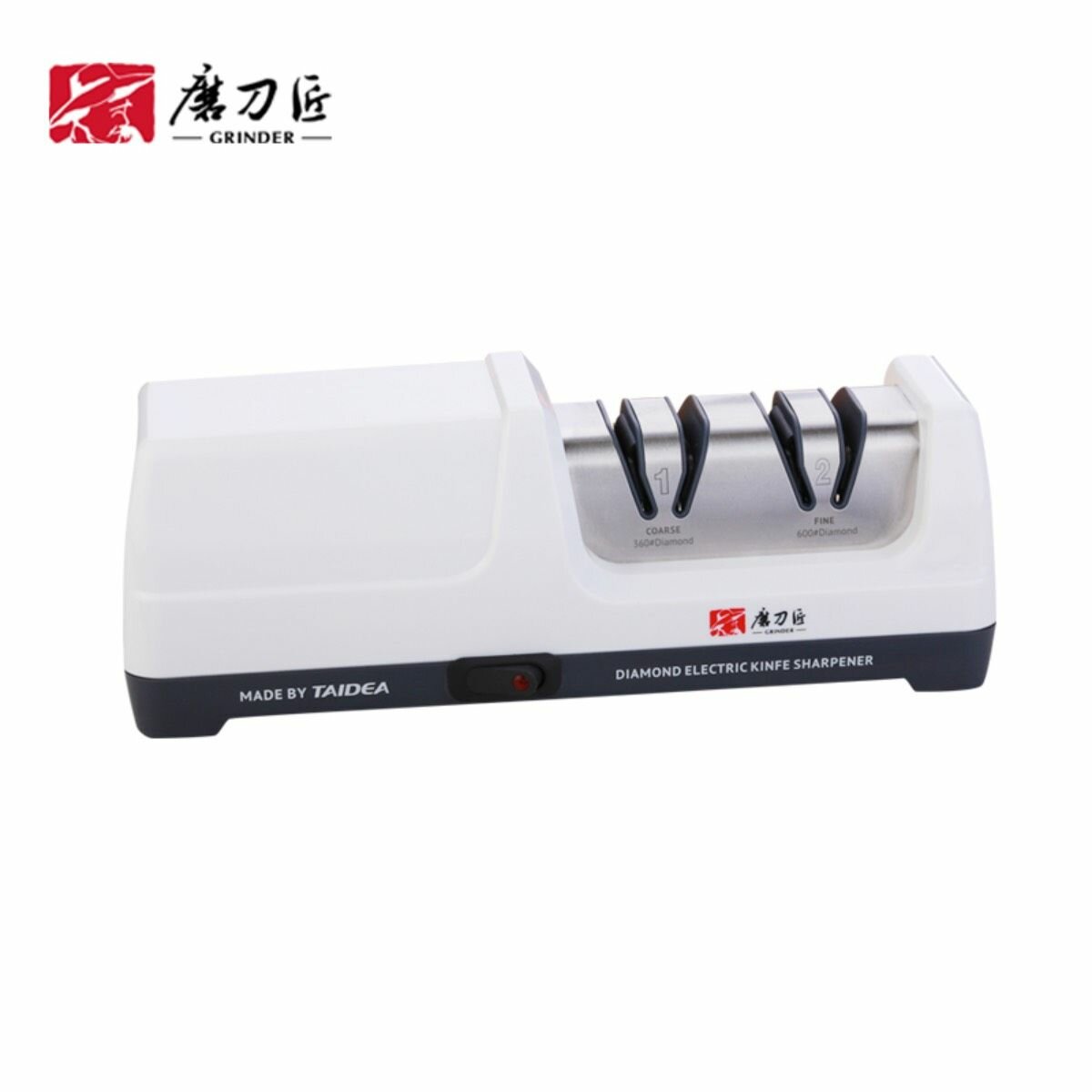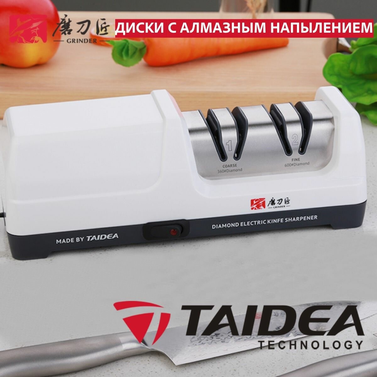Универсальная 2-ступенчатая электрическая точилка для ножей с функциями выравнивания, предварительной и финишной заточки натачивает лезвия с двухсторонней заточкой под 20 градусов у традиционных европейских, китайских, японских, американских, керамических и ножей из дамасской стали.