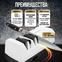 ✅ Автоматический угол 15-17°: Оптимально для большинства ножей Не требует навыков заточки Профессиональный результат