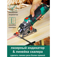 【Мощные двигатели и 3 лезвия】: Мощный 500 Вт медный двигатель обеспечивает максимальную производительность на скорости 4500 об/мин. В комплекте входят три пильных диска диаметром 85 мм: одно 30-зубое для дерева, одно 36-зубое для мягкого металла и одно алмазное для плитки.