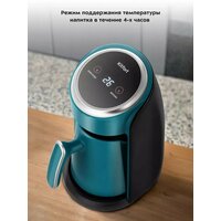 На дисплее отображается температура кофе, воды или молока в турке, что позволяет контролировать процесс приготовления. Ручка турки выполнена из пластика и не нагревается, что делает использование безопасным.