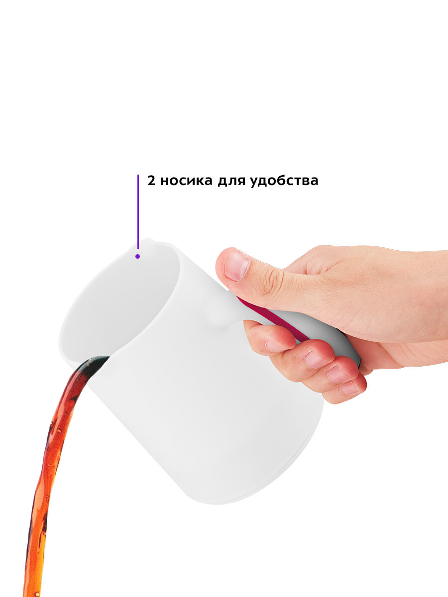 Высокое качество материалов Ручка турки пластиковая, не нагревается и удобно лежит в руке. У турки 2 носика, это сделано специально, чтобы вам было удобно наливать кофе в чашку вне зависимости от того, правша вы или левша.