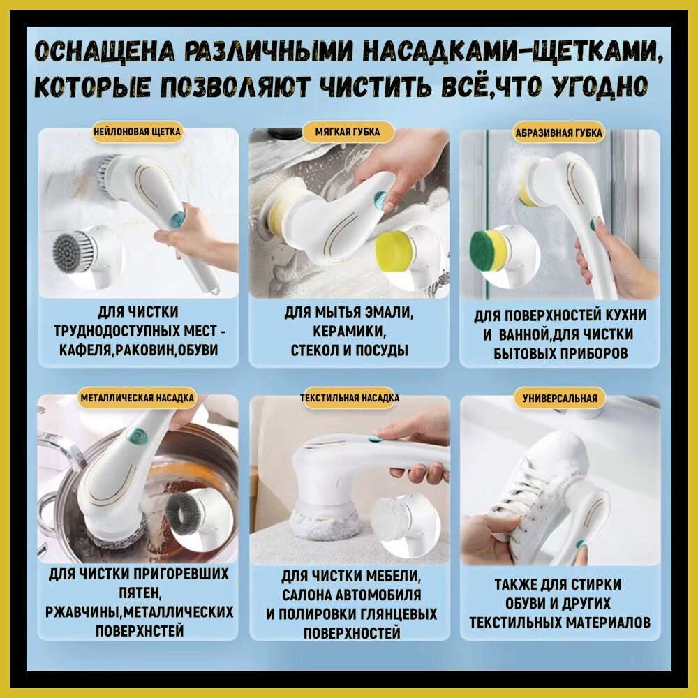 Электрическая- универсальная ручная щетка для уборки с насадками Magic Brush 5 в 1/ Щетка для уборки кухни, дома, ванны: сравнение цен, характеристики, фото, актуальное наличие и цены.