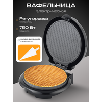 Купить Электрическая вафельница для тонких вафель, трубочек, с конусом для рожков, мощность 750 Вт, черный с доставкой по всей России.