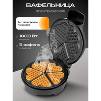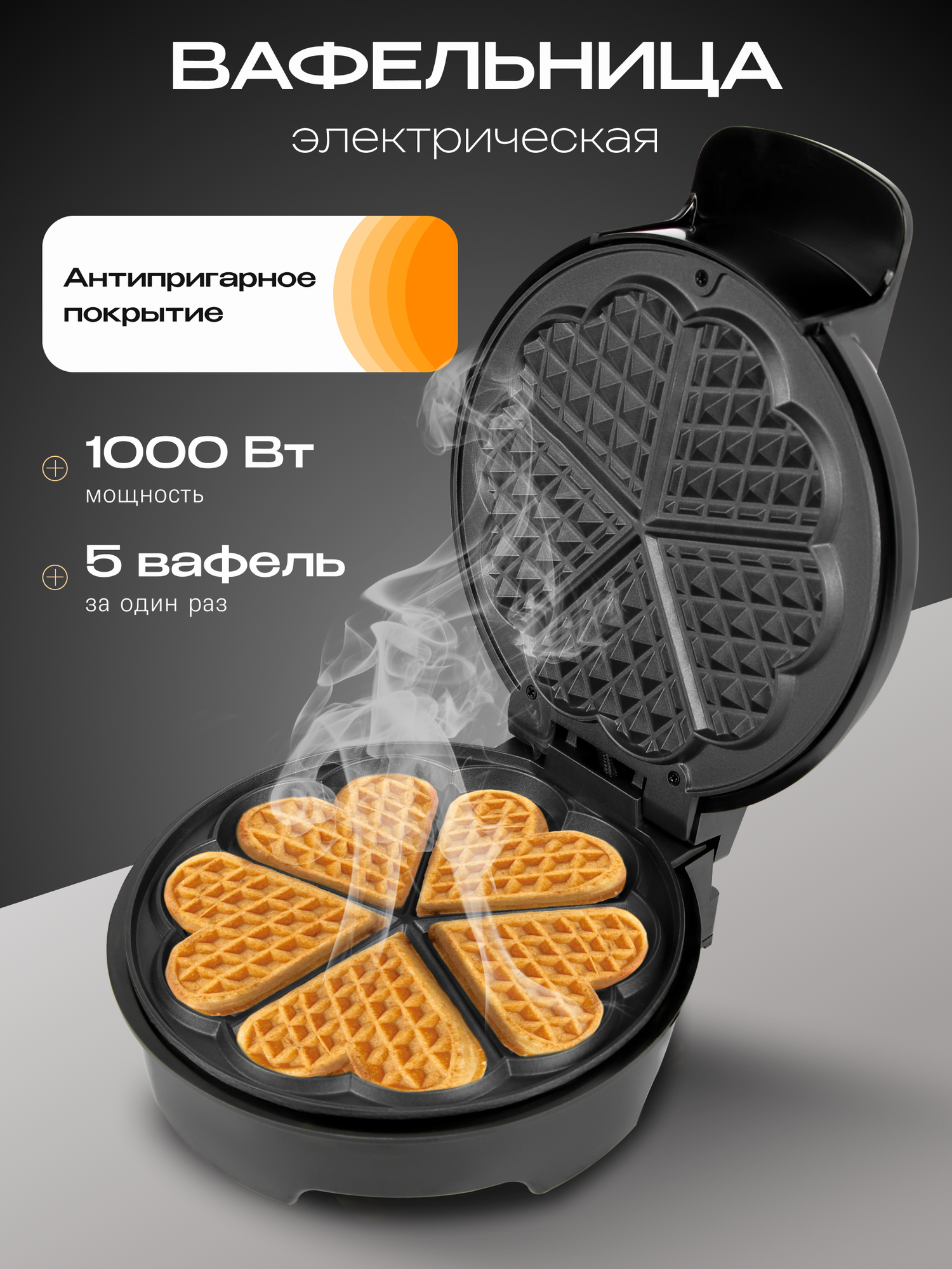 Купить Электрическая вафельница для венских и бельгийских вафель, панель сердечки, мощность 1000 Вт, черная с доставкой по всей России.