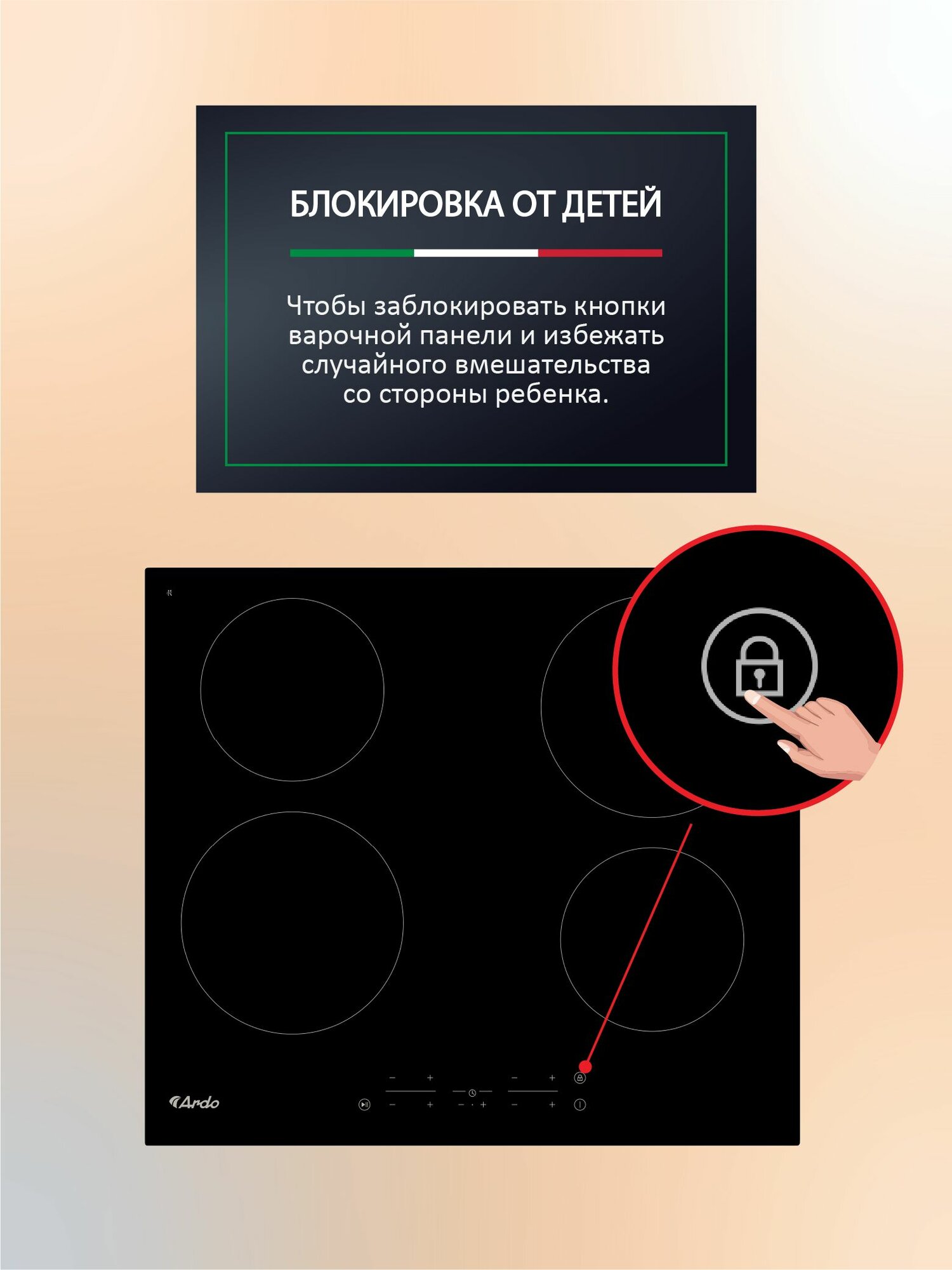 Купить Электрическая варочная панель Ardo VCM64BT2 с сенсорным управлением, функция Stop & Go, мощность 6000 Вт, таймер, индикация остаточного тепла, блокировка от детей, 59 см с доставкой по всей России.