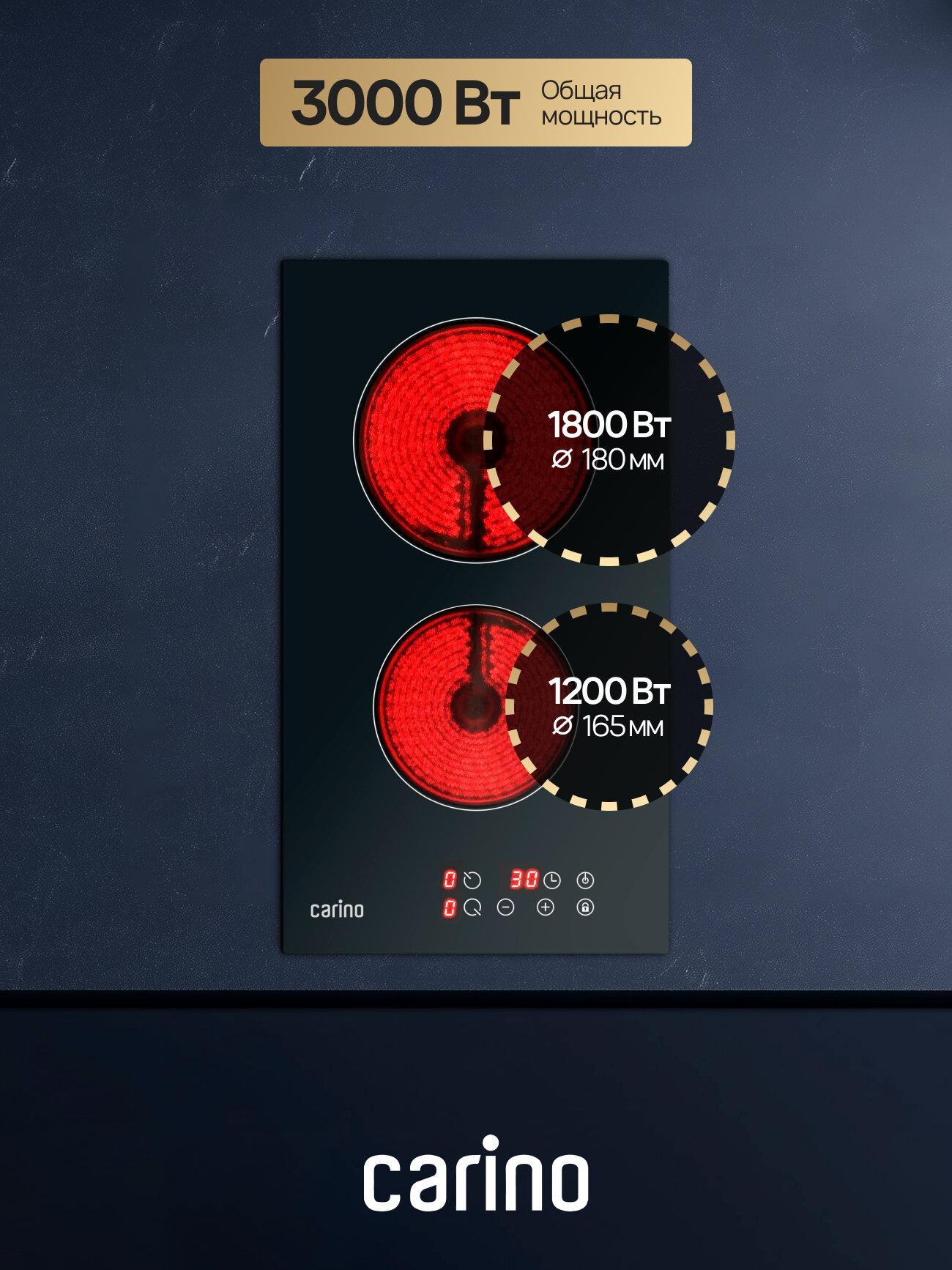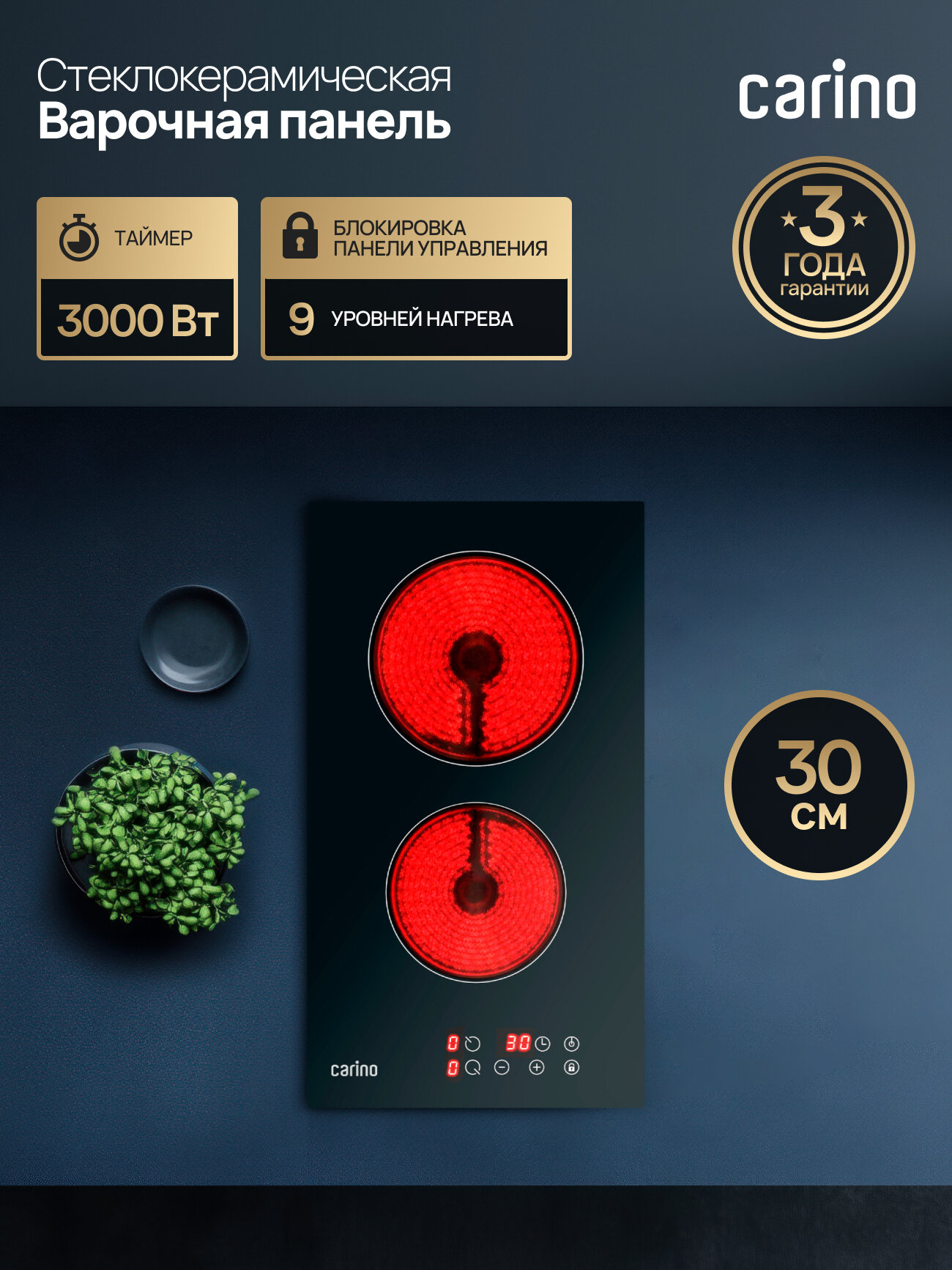 Электрическая варочная панель CARINO CH30D12B011, 30см, стеклокерамика, 9 уровней нагрева, таймер: сравнение цен, характеристики, фото, актуальное наличие и цены.