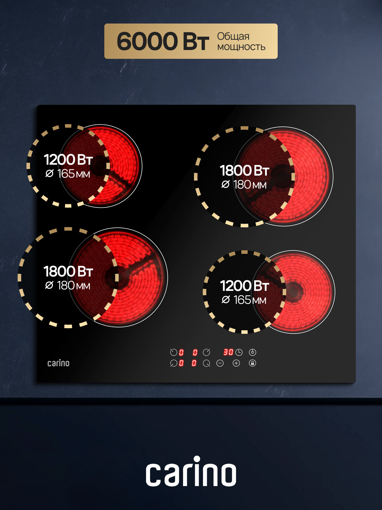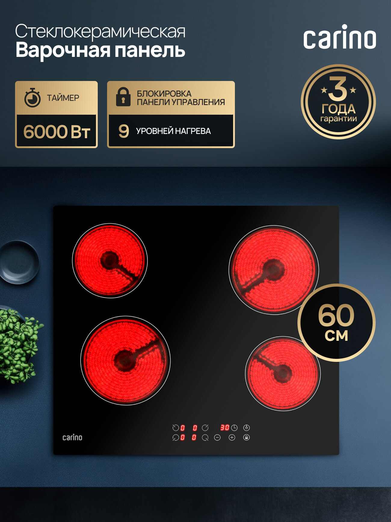 Электрическая варочная панель CARINO CH60D14B011, 60см, стеклокерамика, 9 уровней нагрева, таймер: сравнение цен, характеристики, фото, актуальное наличие и цены.