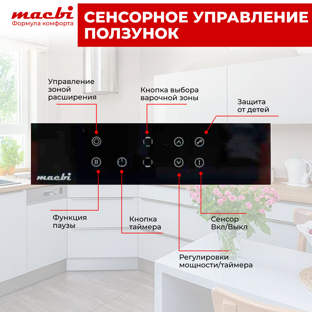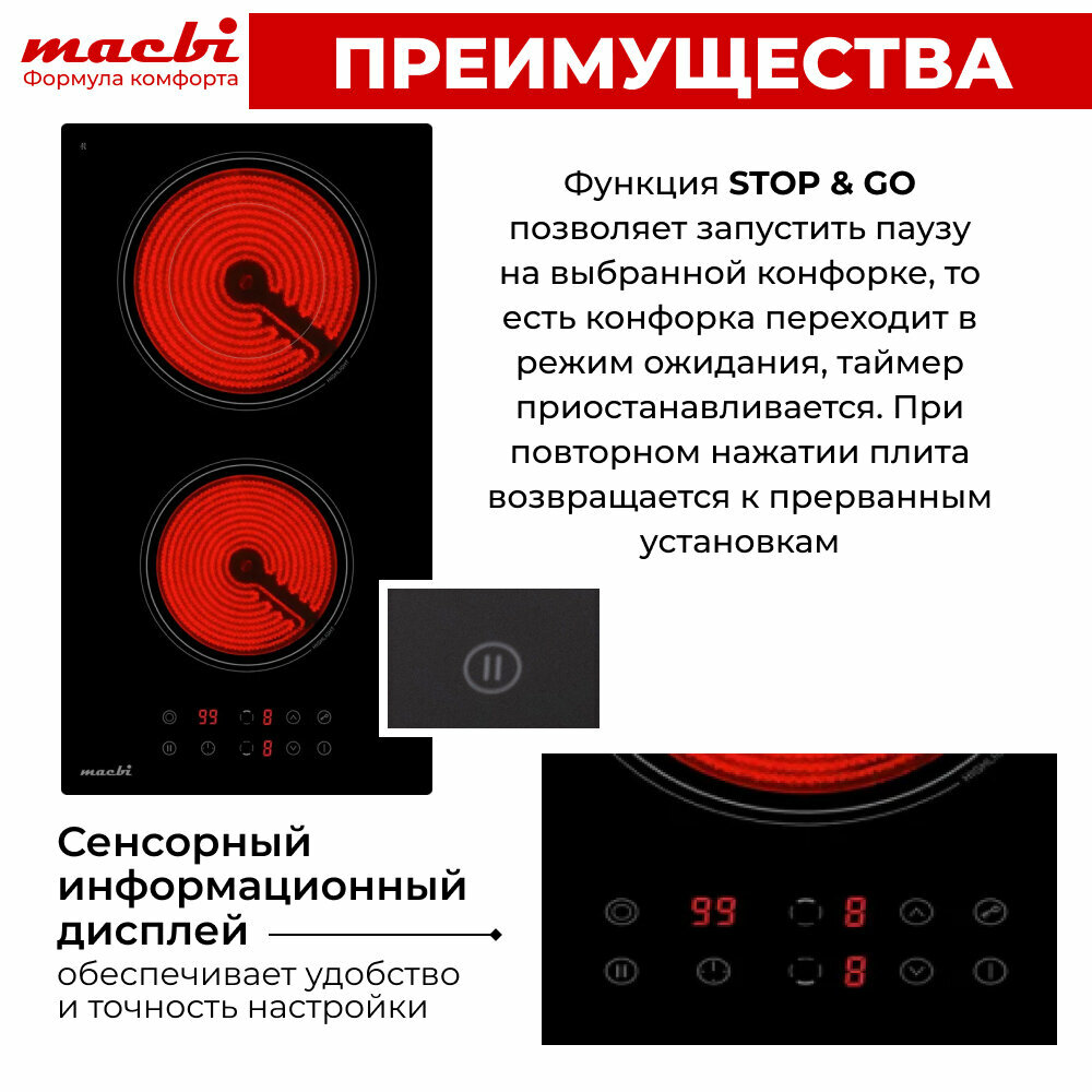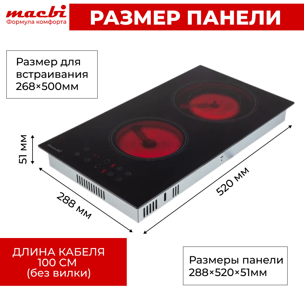 Электрическая варочная панель MACBI 2 конфорки «Домино» с расширенной зоной нагрева, черный: сравнение цен, характеристики, фото, актуальное наличие и цены.