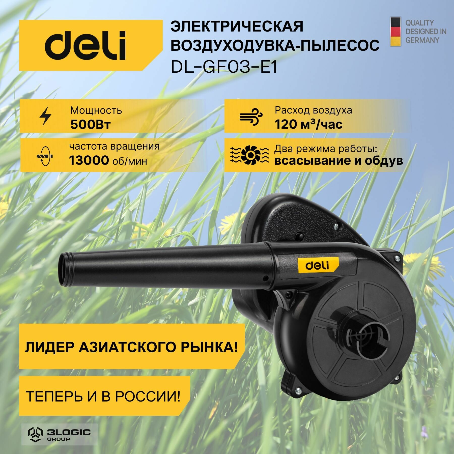 Воздуходувка-пылесос электрическая Deli Tools Deli DL-GF03-E1 (500Вт, 2 м3/мин, 13000 об/мин): сравнение цен, характеристики, фото, актуальное наличие и цены.