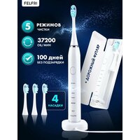 Электрическая ультразвуковая зубная щетка для взрослых — это передовое решение для поддержания здоровья зубов и десен. Уникальная технология ультразвуковых волн обеспечит глубокую очистку, не повреждая эмаль и идеально подходя для чувствительных зубов. Щетка оснащена 5 режимами работы, что позволяет выбрать оптимальный режим для каждой ситуации: от мягкой чистки до интенсивной и отбеливающей. Особенностью модели является её длительная автономность — до 100 дней без подзарядки, что делает её удобным и экономичным выбором для путешествий и повседневного использования. В комплект входят 4 насадки, каждая из которых прослужит до 3 месяцев, а водонепроницаемый корпус гарантирует безопасность при использовании в ванной. Эта электрическая щетка идеально подходит для людей с чувствительными зубами и тех, кто ценит высокое качество ухода за полостью рта. В комплекте также предусмотрен удобный дорожный футляр, который защищает устройство при транспортировке. Отличный выбор в качестве подарка для близких или коллег, а также для себя — она обеспечит свежесть дыхания и уверенность в своем здоровье каждый день.