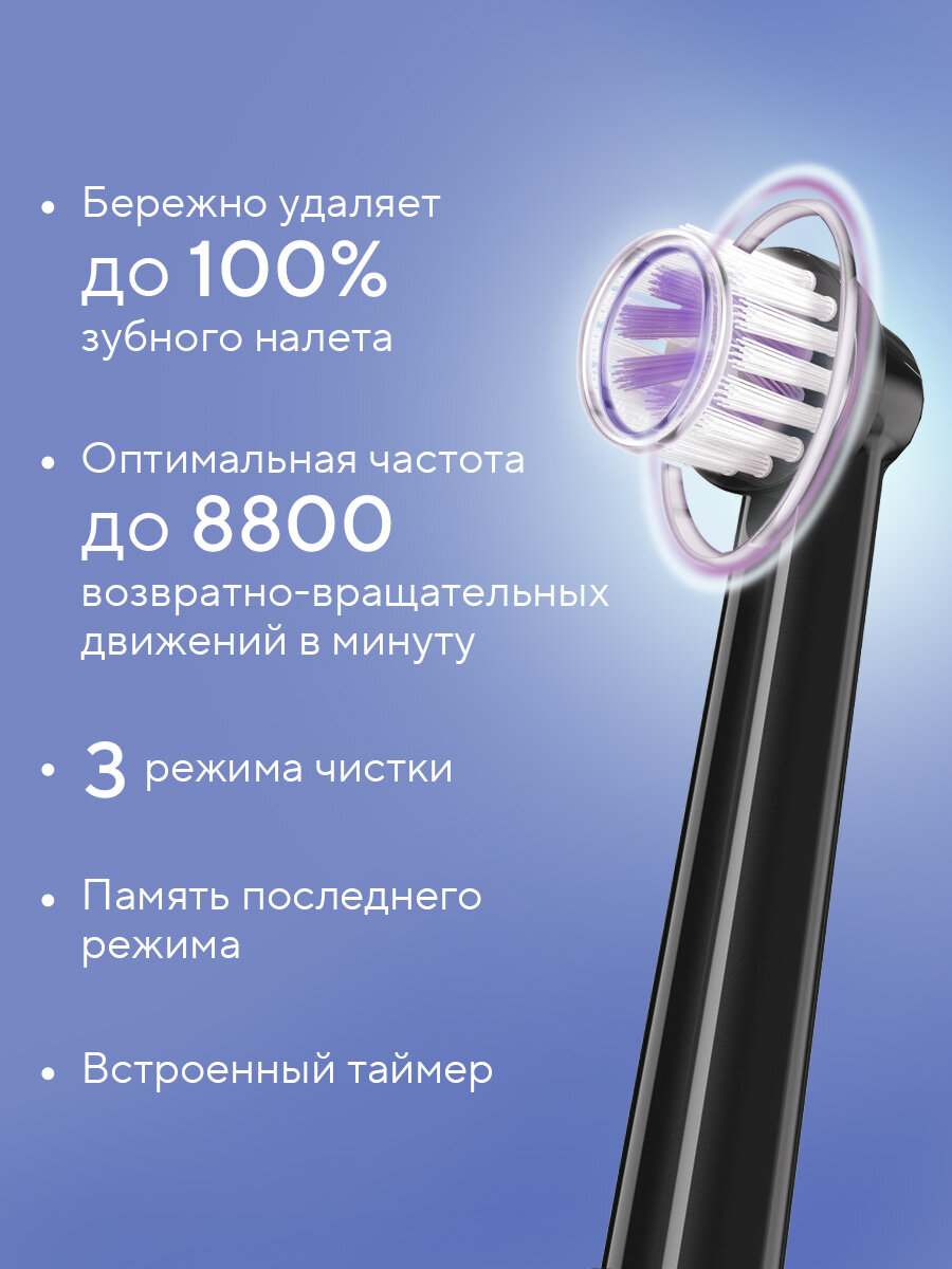 | Режимы работы | деликатная чистка, ежедневная чистка, массаж, отбеливание, полировка, уход за деснами |