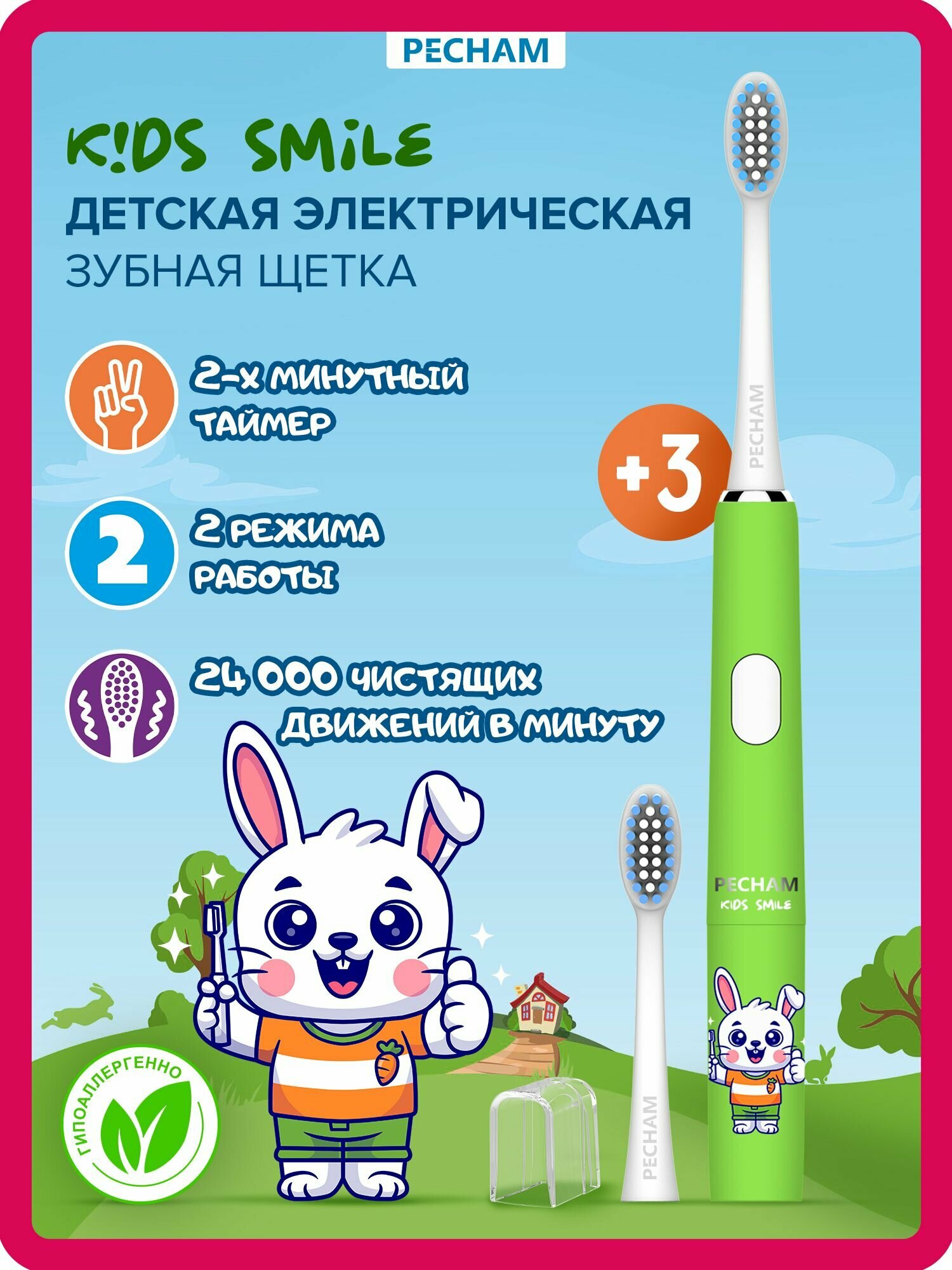 Электрическая зубная щетка детская PECHAM Kids Smile, PC-3502, для детей от 3х лет