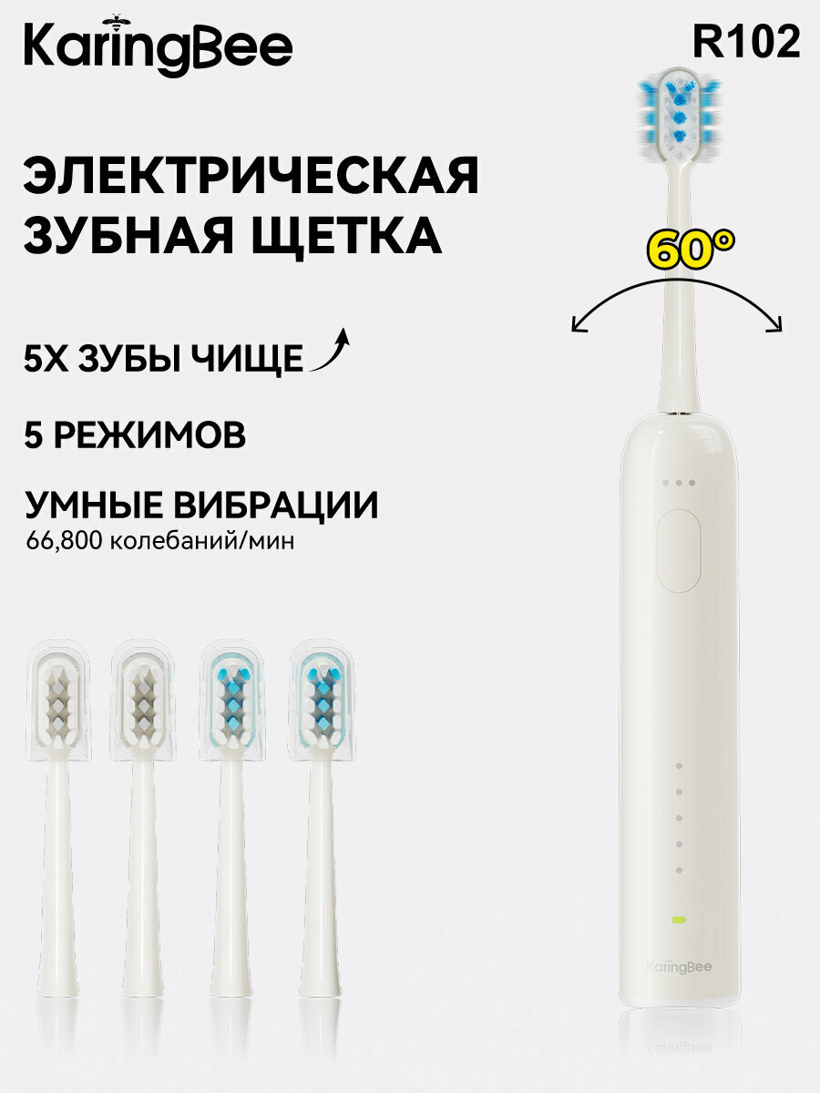 Электрическая зубная щетка Karingbee R102, 2 в 1, вибрация+колебания, 5 режимов, 4 насадки, Розовый: сравнение цен, характеристики, фото, актуальное наличие и цены.
