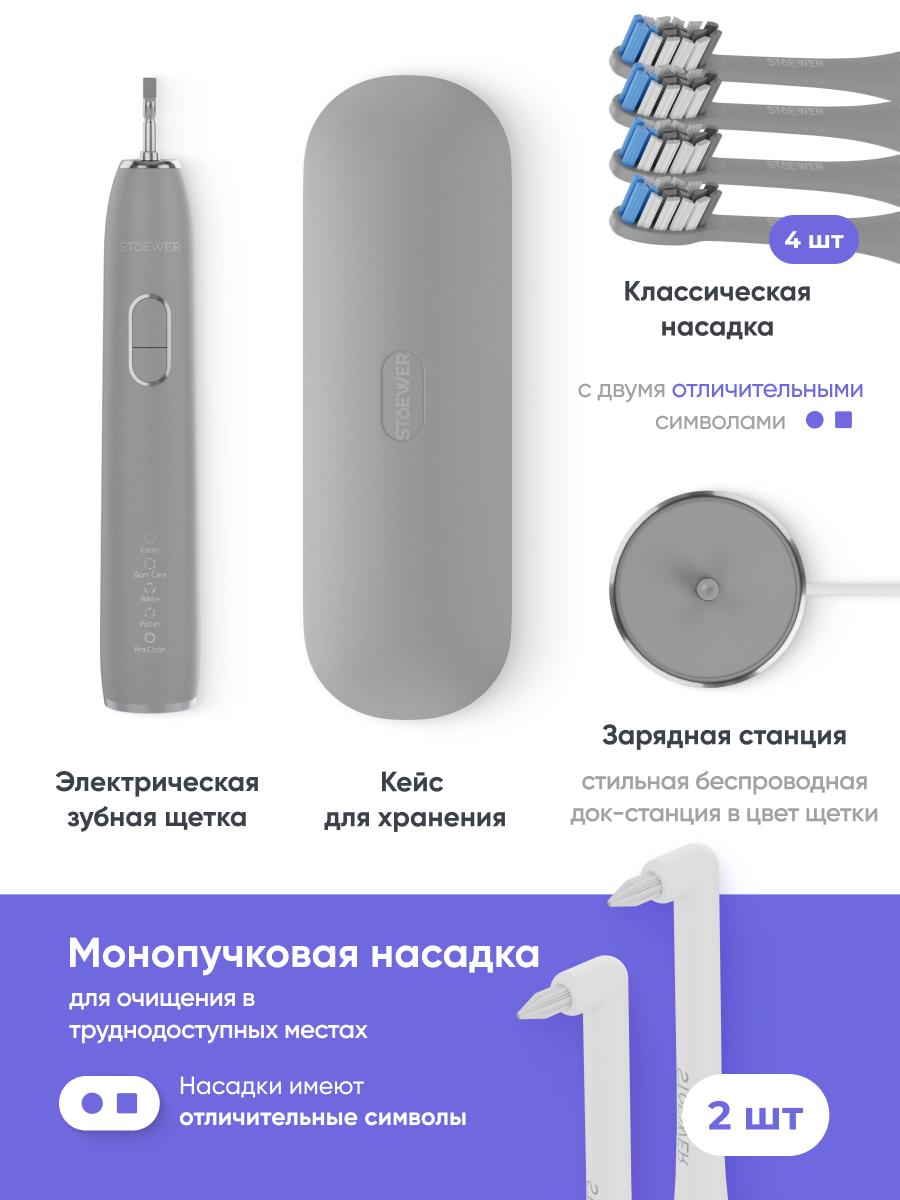 Представьте электрическую зубную щетку, которая понимает, что нужно именно вашим зубам и деснам сегодня. Stoewer SoniBrush M5 — это звуковая щетка нового поколения, которая объединяет мощность современных технологий и заботу о здоровье полости рта каждого члена семьи. Ваш персональный стоматолог в руках: 5 уникальных режимов (ежедневная чистка, уход за деснами, отбеливание, полировка, интенсивное очищение) и 3 уровня интенсивности в каждом. Это 15 вариантов настройки! Чувствительные десны? Выбирайте бережный режим. Хотите сияющую улыбку? Включите отбеливание. Это уход, который подстраивается под вас, а не наоборот. Умная защита и идеальная техника чистки: Датчик давления — ваш сторожевой для эмали и десен. Щетка мягко вибрирует и подаст световой сигнал, если вы надавите слишком сильно, предотвращая стирание эмали и травмы. Встроенный таймер — гарантия идеальной чистки. Щетка сама отсчитает рекомендованные 2 минуты и мягко напомнит каждые 30 секунд о смене зоны. Больше никакой спешки или недобора по времени. Продумано до мелочей для вашего комфорта: 100 дней свободы от розетки. Зарядили один раз — и забыли на несколько месяцев. Идеально для дома и абсолютно незаменимо в путешествиях. Водонепроницаемость IPX8. Смело мойте щетку под струей воды — ей это не страшно. Система контроля гигиены «2 в 1». Умный индикатор через 3 месяца использования миганием напомнит, что пора сменить насадку. Цветные индикаторные щетинки (только в классических насадках) постепенно светлеют, наглядно показывая степень износа. Меняйте насадку вовремя, без догадок. Полный комплект для всей семьи В коробке вы найдете всё для начала идеального ухода: Сама щетка. 4 классические насадки (цвет соответствует цвету ручки). 2 монопучковые насадки для безупречной чистки труднодоступных мест и зубов мудрости. Удобный дорожный чехол. Зарядная станция. Важный бонус: Все насадки имеют разные символы. Каждый член семьи легко узнает свою — гигиена становится персональной даже при совместном использовании устройства. Stoewer SoniBrush M5 — это инвестиция в здоровье, безупречную чистоту и ежедневный комфорт. Позаботьтесь о своей улыбке на профессиональном уровне.