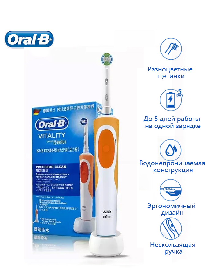 Электрическая зубная щетка Oral-B D12, для взрослых, водостойкая, с микроимпульсными щетинками, оранжевый: сравнение цен, характеристики, фото, актуальное наличие и цены.