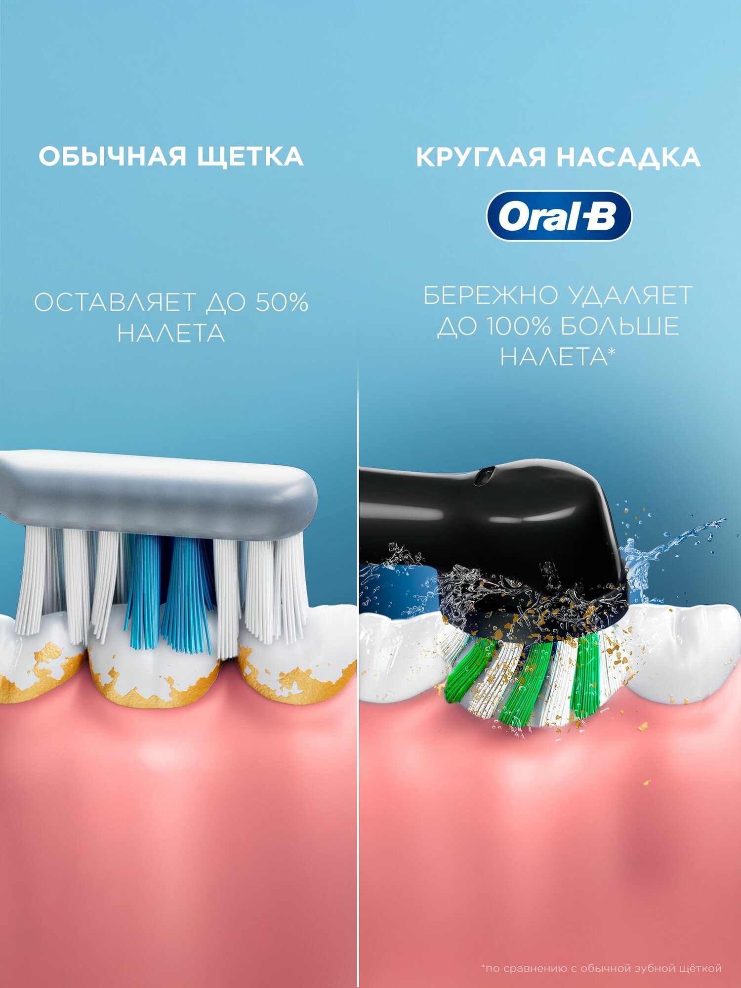 Электрическая зубная щетка Oral-B Pro 3 3000 сделает ежедневный уход за зубами еще более эффективным. Круглая насадка Cross Action охватывает каждый зуб и тщательно очищает со всех сторон. Идеальный угол наклона щетинок обеспечивает удаление до 100% больше зубного налета, чем обычная щетка. В этом помогает технология возвратно-вращательных движений, благодаря которой щетка удаляет налет не только с поверхности зубов, но и между зубами. Особенности модели: