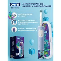 Детская электрическая зубная щетка нового поколения Oral-B Vitality PRO Kids 3+, разработанная совместно со стоматологами специально для детей от 3-х лет, идеально подходит для их потребностей благодаря экстра-мягким щетинкам, бережным режимам чистки, а также специализированной маленькой насадке. Oral-B Vitality PRO Kids 3+ удаляет до 100% больше налета по сравнению с обычной зубной щеткой, а встроенный таймер поможет привить вашему ребёнку правильные привычки чистки зубов с самого раннего возраста. Сделайте выбор в пользу Oral-B — марки зубных щеток № 1, используемой большинством стоматологов в мире
