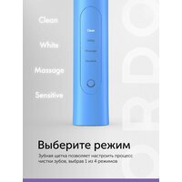 Купить Электрическая зубная щетка ORDO Sonic+ с 4 режимами, таймером, зубная щетка электрическая, зарядным устройством, голубая с доставкой по всей России.