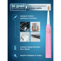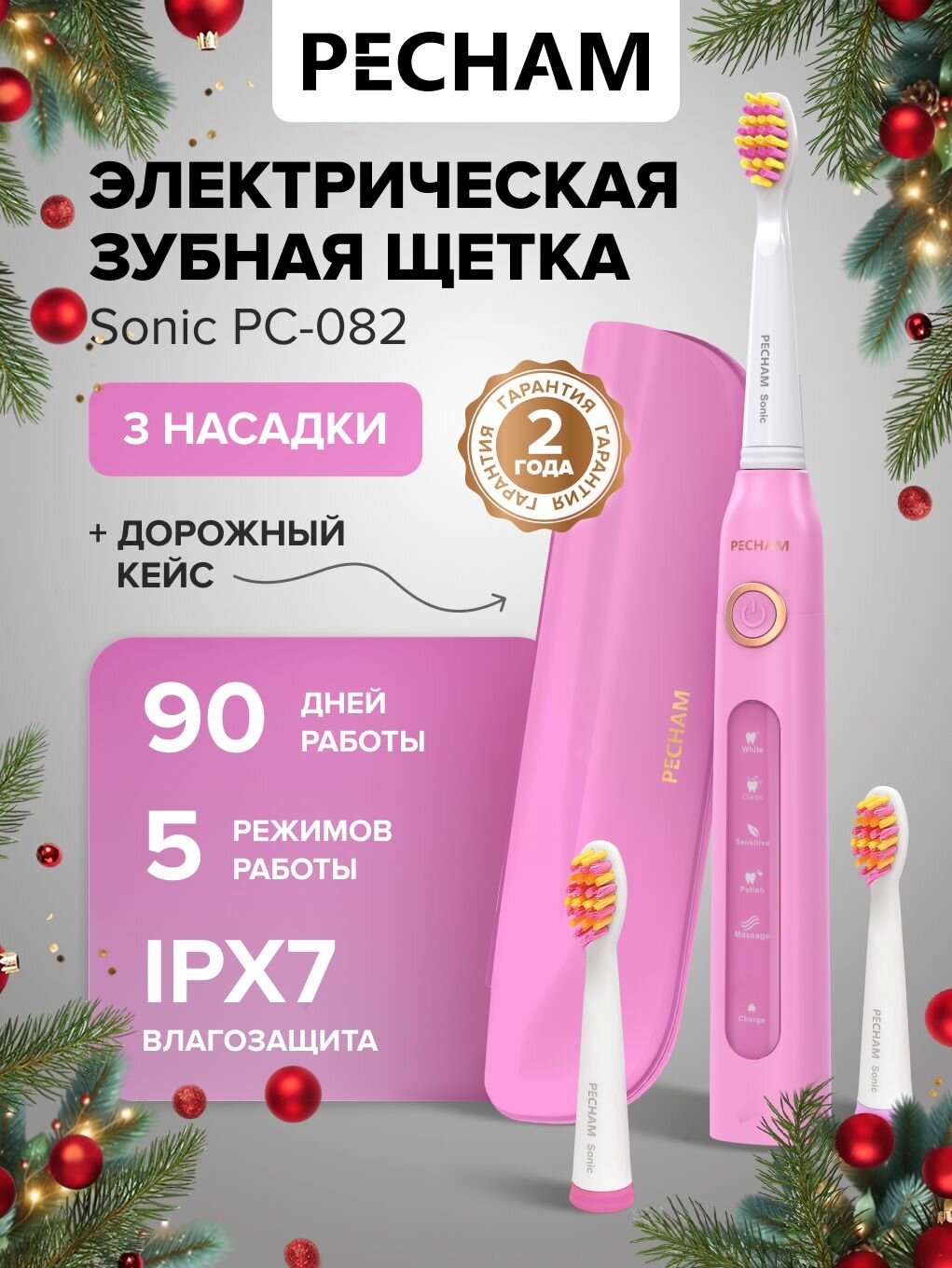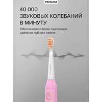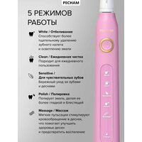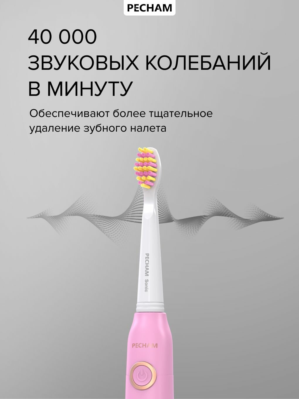 Электрическая зубная щетка PECHAM Sonic Pink, 3 насадки, Дорожный кейс, 5 режимов чистки.