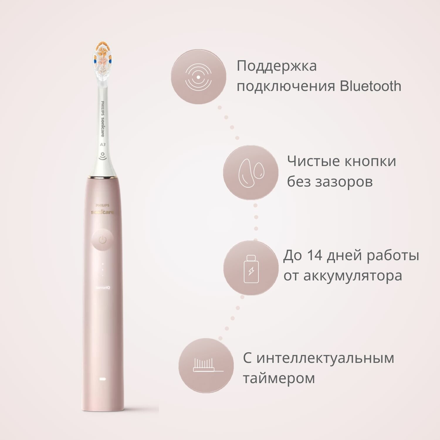 - Технология SenseIQ: Щетка анализирует силу нажатия, движения и охват области каждую секунду до 100 раз, автоматически регулируя интенсивность чистки, чтобы предотвратить чрезмерное давление и заботиться о здоровье зубов и десен.