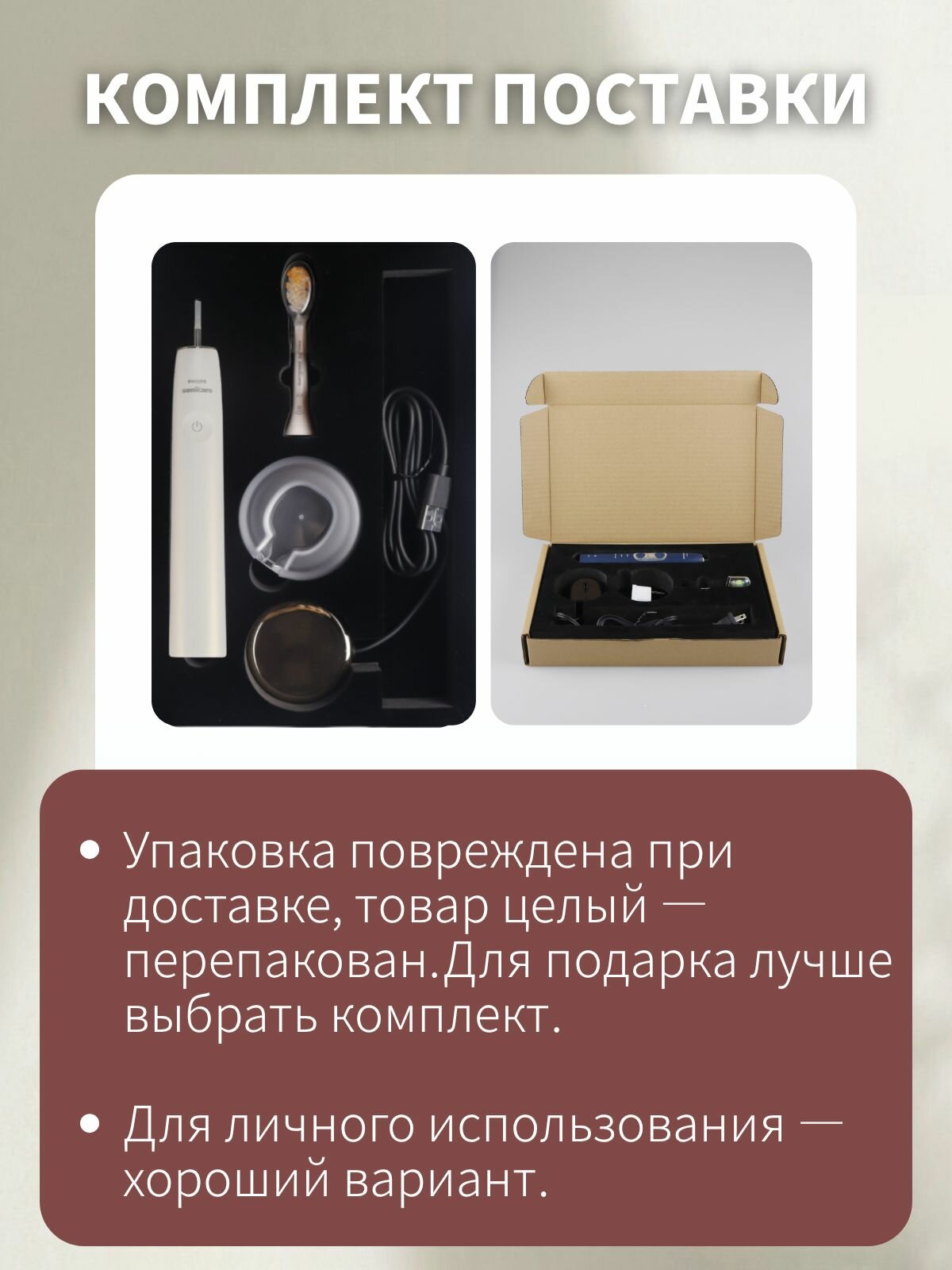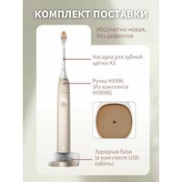| Подробная комплектация | насадка A3 Premium All-in-One, ручка Sonicare 9900 Prestige, премиальный зарядный футляр USB, основание зарядного устройства, кабель USB |