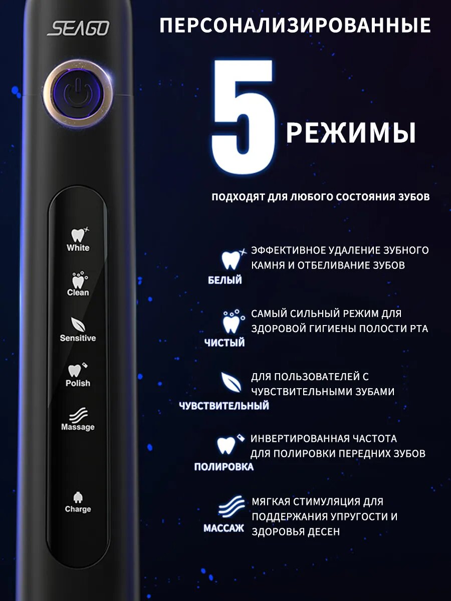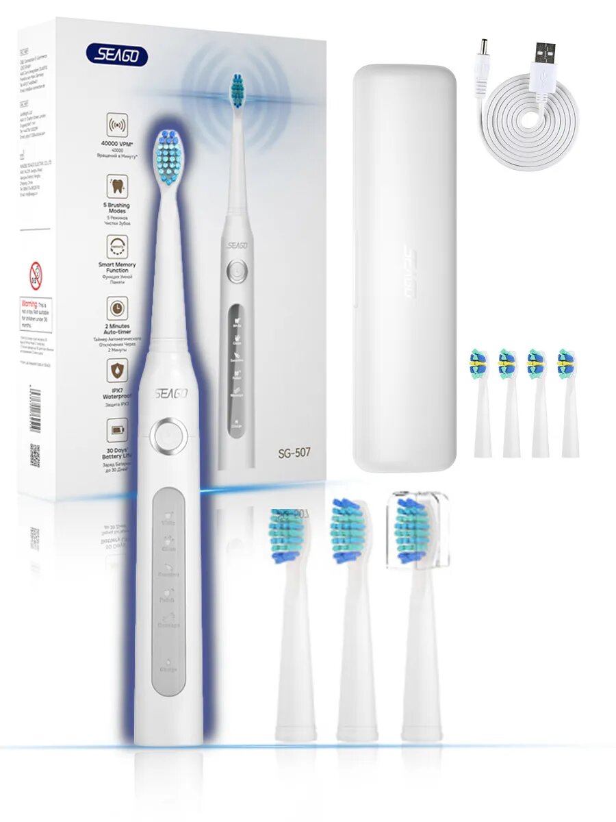 Электрическая зубная щетка Seago 507 White, с 8 насадками, время зарядки 2 часа: сравнение цен, характеристики, фото, актуальное наличие и цены.