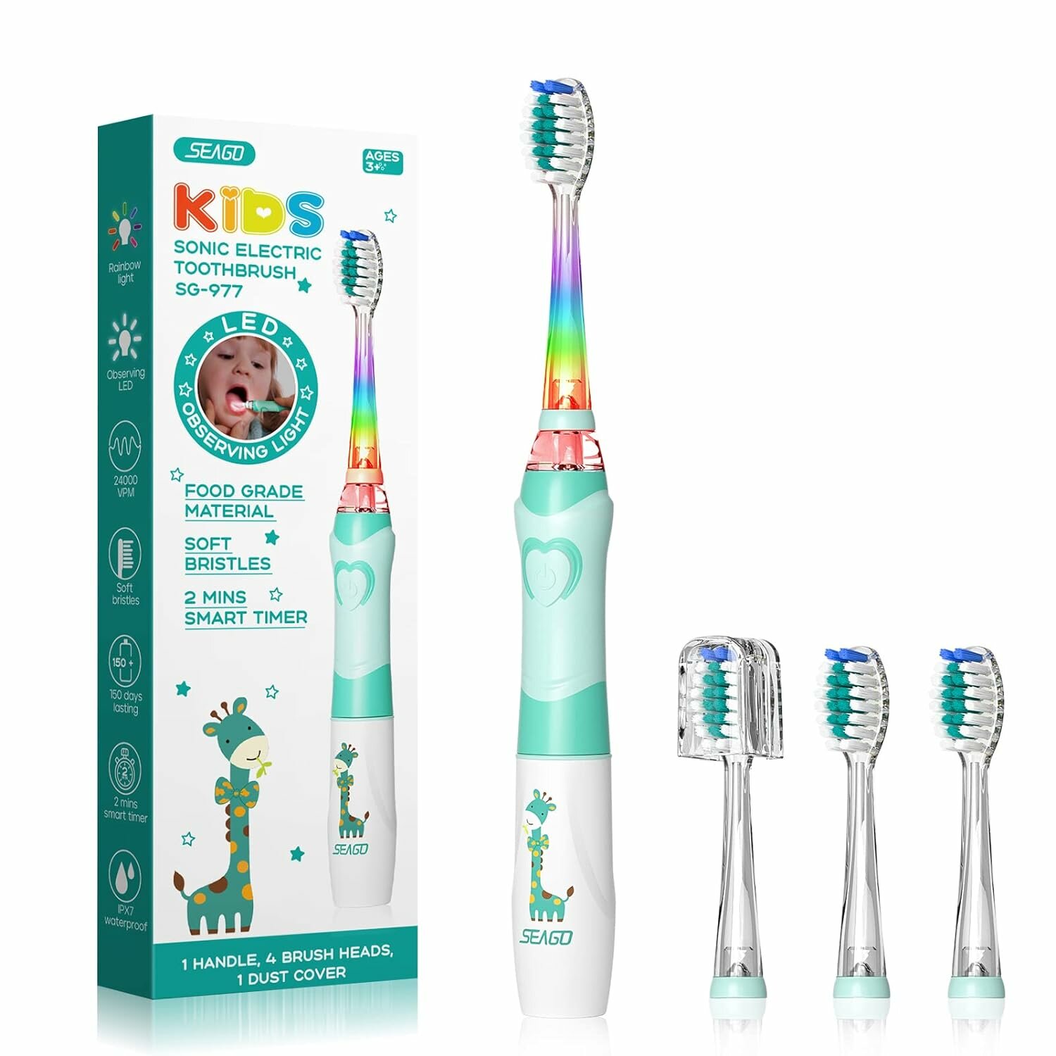 Электрическая зубная щетка Seago для детей с 2-минутным таймером и 4 сменными насадками: сравнение цен, характеристики, фото, актуальное наличие и цены.
