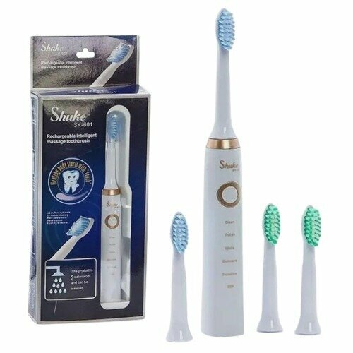 | Подробная комплектация | Электрическая зубная щетка Shuke Sk-601 – 1 шт Сменные насадки – 4 шт USB-кабель для зарядки – 1 шт Защитный колпачок - 1 шт. |