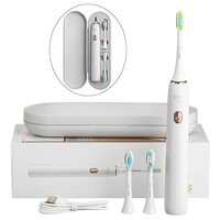 Зубная электрощетка Soocas X3U Sonic Electric Toothbrush С зубной электрощеткой Soocas X3U Sonic вы увидите разницу в белизне своих зубов уже через 4 недели! Она поставляется с 3 многофункциональными щетками, имеет 4 режима гашение вибрации, шумоподавление и тихо работает в автономном режиме до 30 дней после 4 часов зарядки. Широкая комплектация и удобный чехол позволяет комфортно пользоваться и транспортировать устройство, а инновационная мощность двигателя 39 600 колебаний в минуту вмиг избавит вас от желтизны и налета. Эффективное отбеливание всего за 2 минуты и каждую неделю на тон белее Вам достаточно двух минут чистки для удаления грязи и налета из труднодоступных мест. Через 28 дней вы заметите существенное отбеливание на 4 тона, а через 90 дней с помощью электрощетки Soocas X3U Sonic вы оздоровите полость рта и зубы. Исследование на 66 добровольцев в течение месяца подтвердило, что мощные импульсы Soocas X3U без особого труда избавляют даже от стойких загрязнений на зубах любителей кофе, курильщиков и т. д. Высокая мощность и удобная чистка Немецкие и японские конструкторы разработали инновационный электродвигатель с мощностью 39 600 колебаний в минуту! Даже у затвердевшего налета и стойкой желтизны нет никаких шансов. Под анатомическим углом наклона 18.5° электрощетка Soocas X3U Sonic проникает в щели и другие места, до которых не добраться щетке других брендов. 3 насадки и 4 функции для максимальной чистоты В комплекте к электрощетке Soocas X3U Sonic поставляются 3 насадки. Щетка без металла обеспечивает конструкцию от появления коррозии. Она создана специально для ванных комнат, в которых сложно снизить высокий уровень влажности, например, когда в доме живет много членов семьи. В щетке без металла на 40 % больше щетинок, чем в обычной щетке, и закругленный ворс Dupont. Щетка для глубокой полировки имеет силиконовые вставки, которые стирают налет с зубов подобно ластику. Ей можно чистить зубы 1-2 раза в неделю без вреда для эмали. Мягкая щетка со специальными прогрессивными закругленными щетинками Dupont не вызывает кровоточивости десен, нежно заботясь о полости рта. С обратной стороны мягкой и отбеливающей полировочной щетки расположен скребок для языка, который избавляет от налета и грязи, соответственно, обеспечивает полный гигиенический уход. Шумоподавление и система гашения вибрации Зубная электрощетка Soocas X3U Sonic не издает много шума, так как оснащена технологией шумоподавления. Также вам не нужно ее очень крепко держать в руках, поскольку улучшенная система гашения вибрации позволяет более точно передавать импульсы на головку щетки. Режимы очистки и быстрая зарядка Зубная электрощетка Soocas X3U Sonic имеет четыре режима очистки. Универсальный режим подходит для ежедневной чистки. Чувствительный режим — для ухода за чувствительными деснами. Режим новичка поможет вам привыкнуть к электрощетке после использования обычной. Режим полировки (1-2 раза в неделю) отлично справляется с устоявшимися пятнами на зубах. За 4 часа электрощетка заряжается на 30 дней верной службы. Умная забота на всех уровнях Зубная электрощетка Soocas X3U Sonic постепенно увеличивает частоту колебаний в течение пяти секунд после включения, чтобы не разбрызгать нанесенную зубную пасту. Каждые 30 секунд она напоминает, что нужно сменить область чистки. И через две минуты щетка автоматически отключается, так как этог