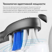 | Дополнительная информация | d комплекте с этой электрической щеткой идут 4 инновационные насадки с мягкой силиконовой оболочкой, которые обеспечат бережное очищение даже для самых чувствительных зубов. А благодаря автоматической подстройке интенсивности под силу вашего нажатия, процесс очистки будет максимально комфортным и эффективным |