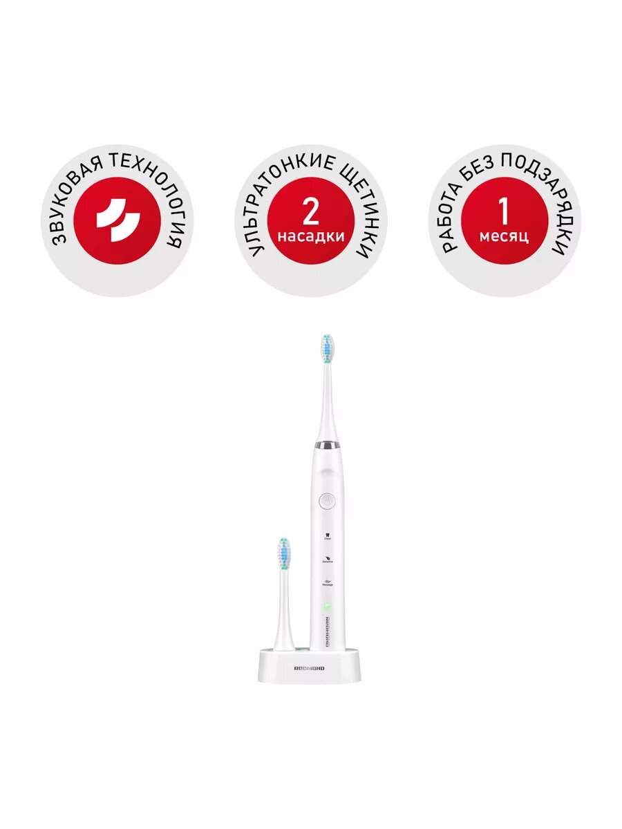 Электрическая звуковая зубная щетка Revyline RL 010, белая, 5 режимов