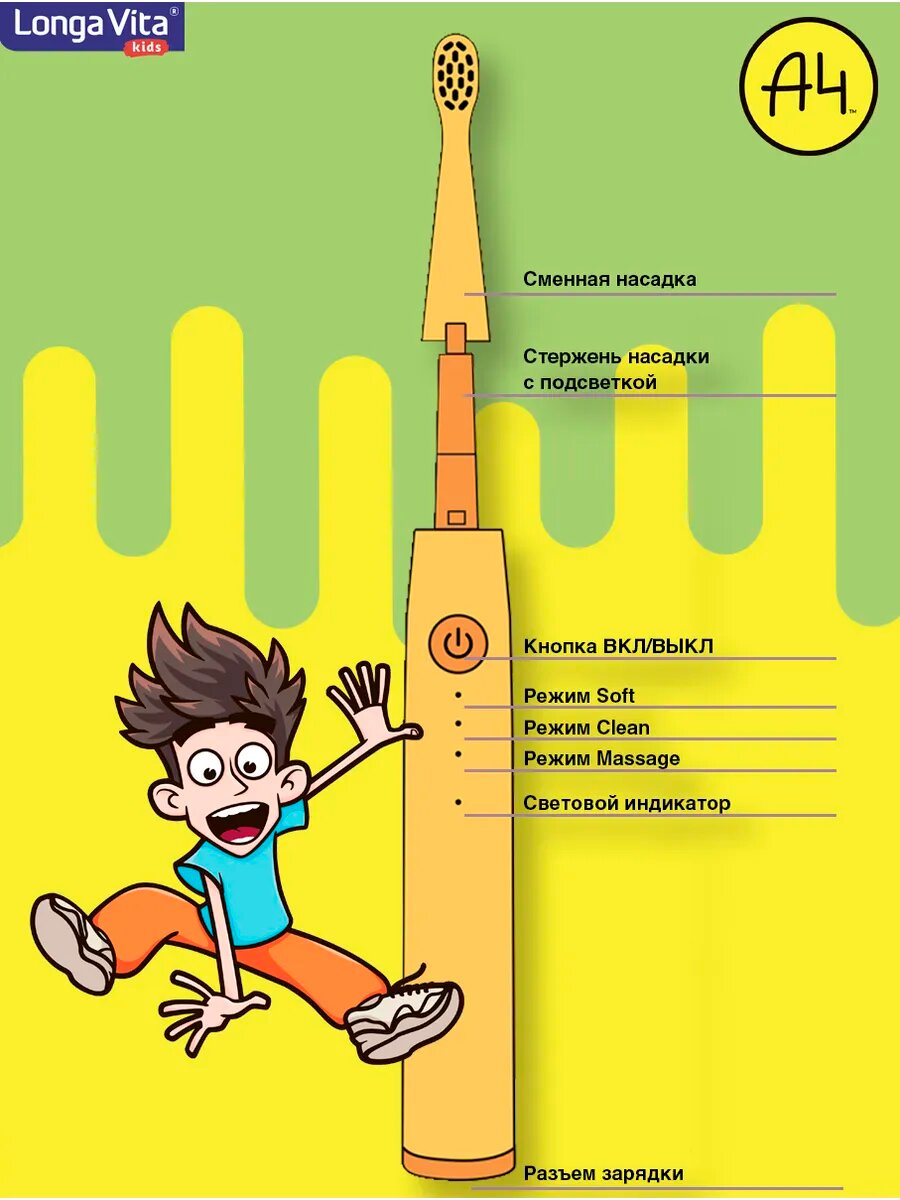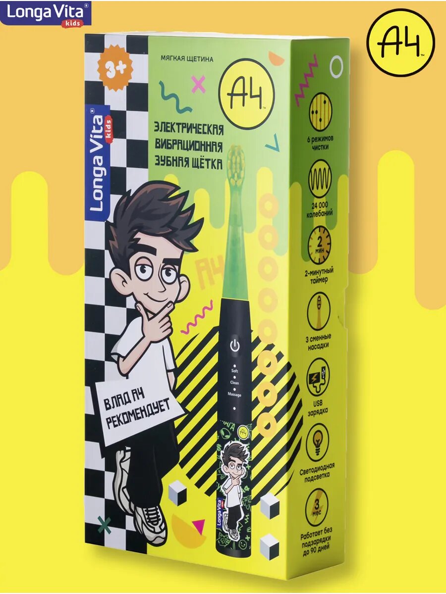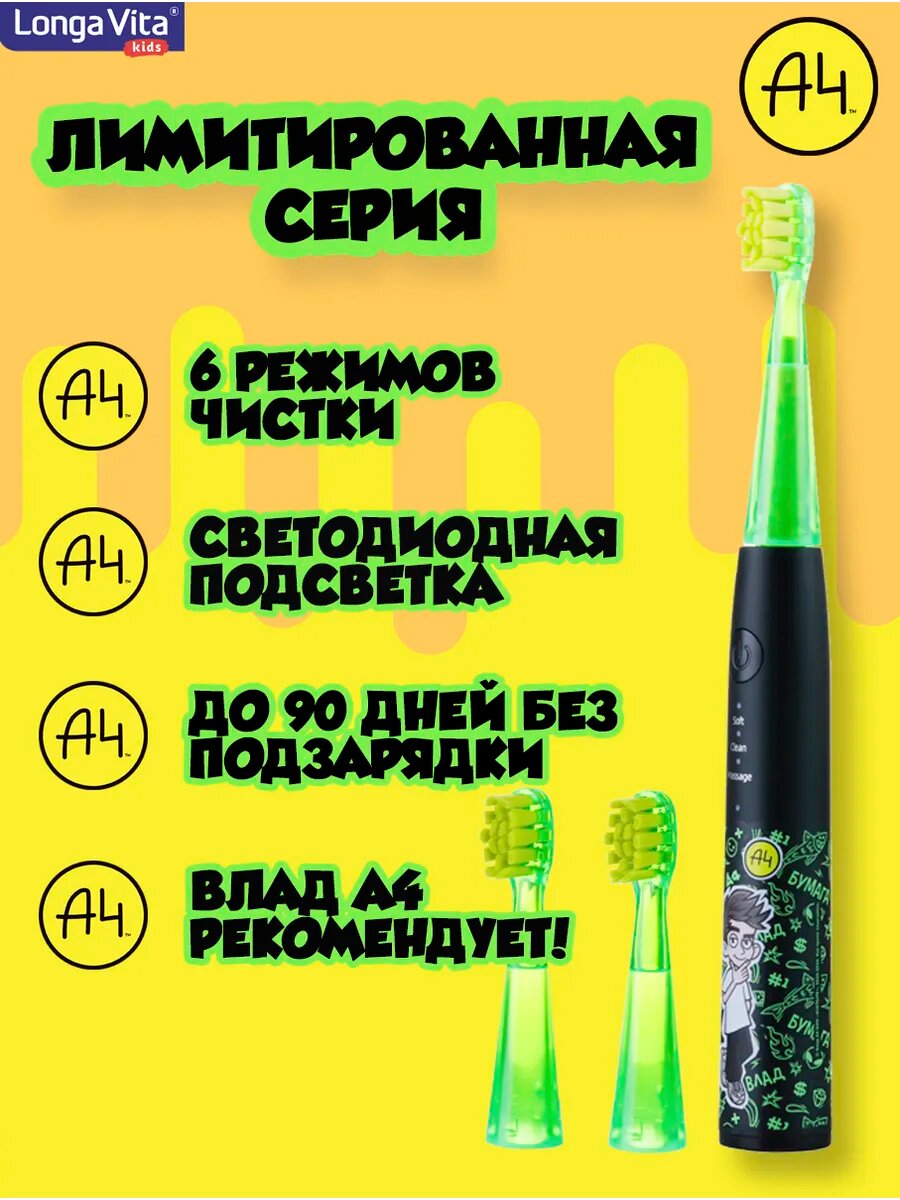 Детская зубная щетка Longa Vita Влад А4, звуковая, 24000 пульсаций в мин, 6 режимов: сравнение цен, характеристики, фото, актуальное наличие и цены.