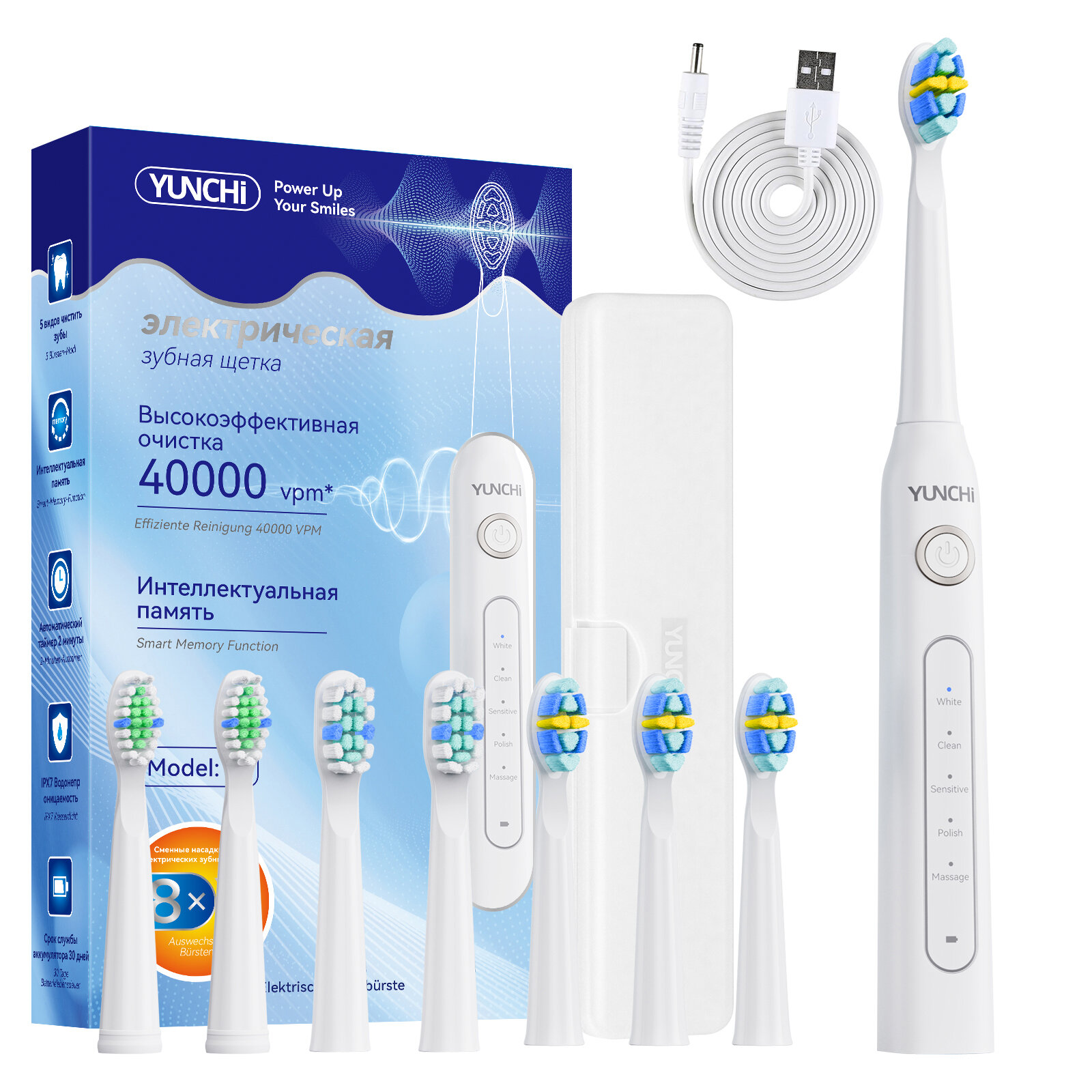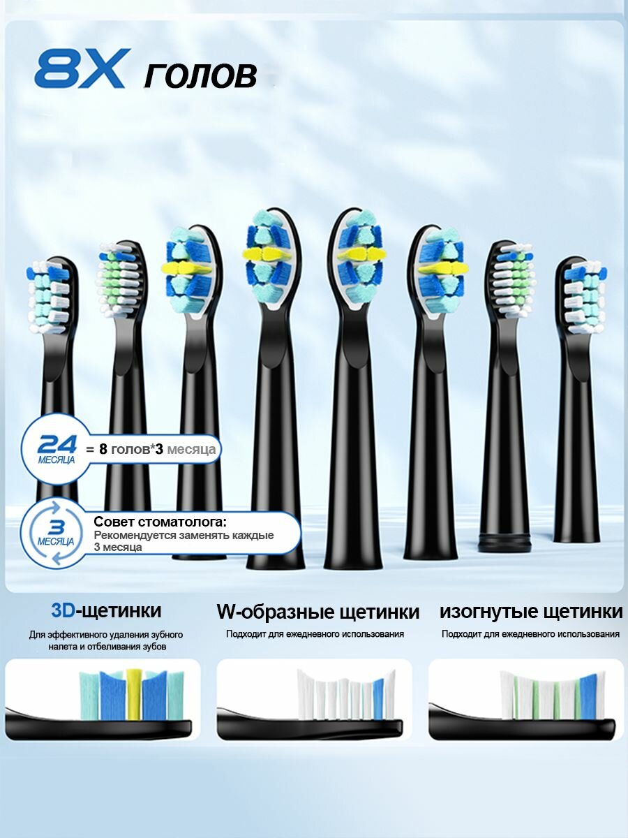 | Подробная комплектация | Упаковка Подробнее: 1 ручка зубной щетки 8 насадок 1 кабель данных 1 защитный чехол Цветная коробка руководство |