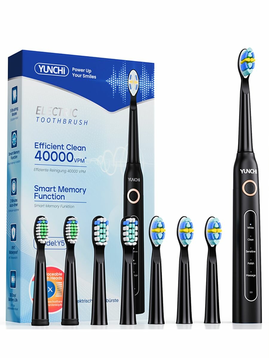 Купить Электрическая зубная щетка YUNCHI Y5, 5 режимов, мягкая щетина, черный цвет с доставкой по всей России.