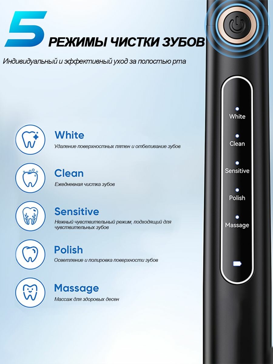 Электрическая зубная щетка YUNCHI Y5, 5 режимов, мягкая щетина, черный цвет: сравнение цен, характеристики, фото, актуальное наличие и цены.