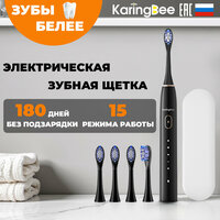Купить Электрическая зубная щётка KaringBee R101 четыре насадки, 1 рожный ящик, звуковая, Черная с доставкой по всей России.