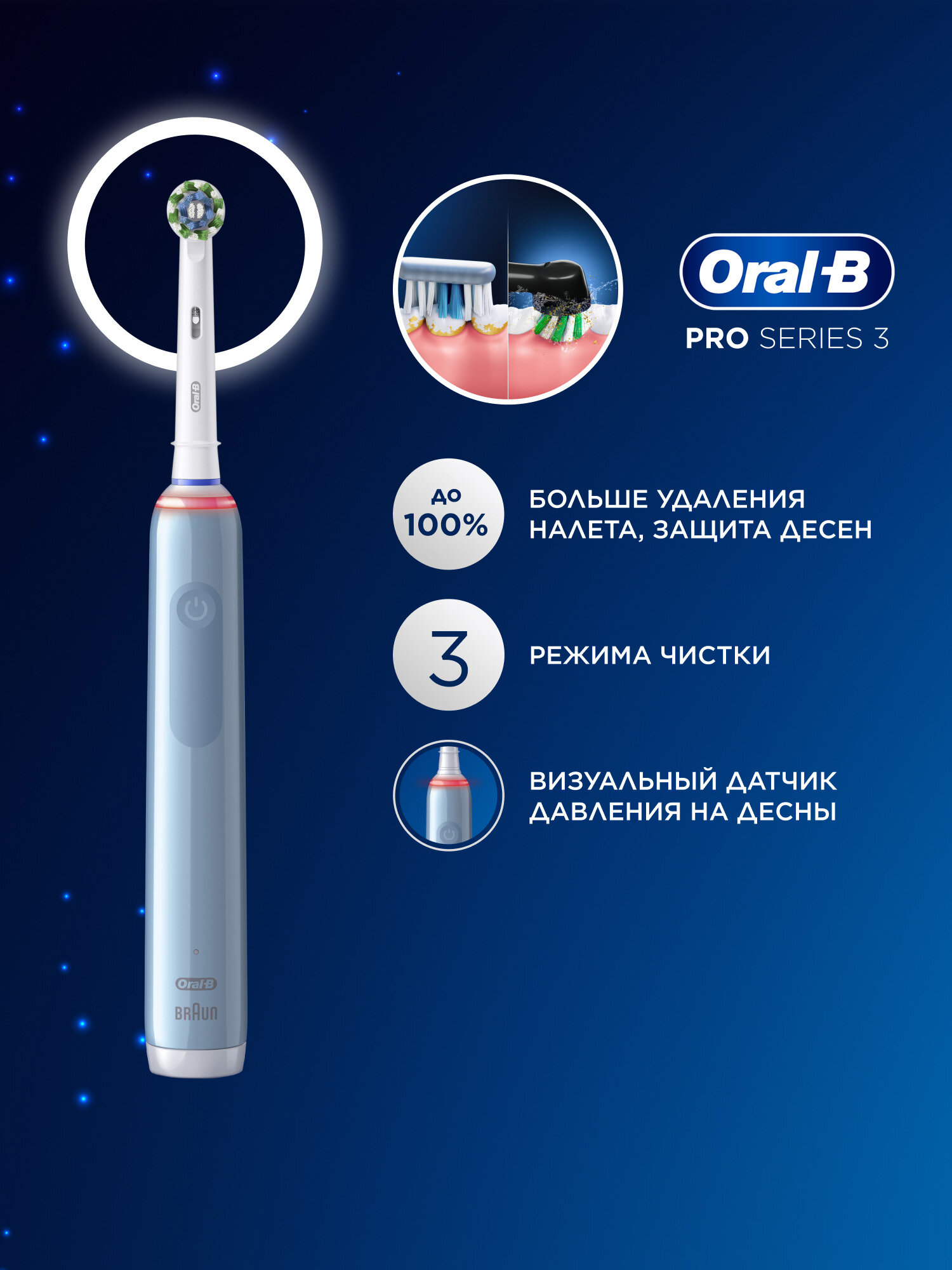 Электрическая зубная щётка Oral-B Pro Series 3, 1 сменная насадка, с датчиком давления, Голубая: сравнение цен, характеристики, фото, актуальное наличие и цены.