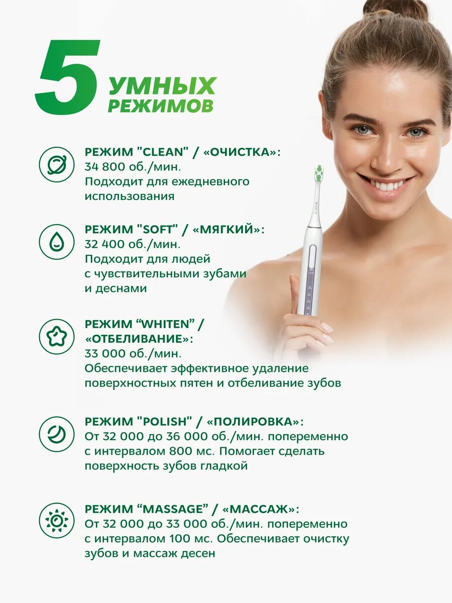 Электрическая зубная щётка R.O.C.S Sonic, пластик, DuPont, средняя жёсткость