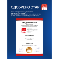 Электрическая звуковая зубная щетка CS Medica Technology CS-333-BK 3 режима. Звуковая частота – 42 000 движ/мин. Таймер с автоотключением через 2 мин. 5 зубных насадок в комплекте. Обслуживание в собственных сервисных центрах по всей территории РФ. Звуковая электрическая зубная щетка для взрослых и детей от 12 лет CS Medica CS-333-BK – это воплощение стиля, качества и надежности. Выполнена в элегантном синем цвете. 3 режима чистки с 3 уровнями интенсивности: «Ежедневный», «Отбеливание», «Забота о деснах». Может использоваться как зубная щетка для брекетов, движения щетинок безопасны для ортодонтических конструкций. Индикатор замены насадки. 2-минутный таймер с интервалами каждые 30 секунд. Мощный аккумулятор для работы без подзарядки до 3 недель (при использовании 2 раза в день по 2 минуты). Индикатор уровня заряда аккумулятора. Индукционное зарядное устройство с USB-кабелем. Высокий уровень защиты корпуса от попадания влаги IPX7 позволяет чистить зубы в душе. В комплекте твердый футляр для поездок. Защитный колпачок защищает насадку от пыли. Комплект поставки: рукоятка (электронный блок) с насадкой, 4 дополнительные насадки, зарядное устройство, защитный колпачок для щетины, дорожный футляр, руководство по эксплуатации с гарантийным талоном