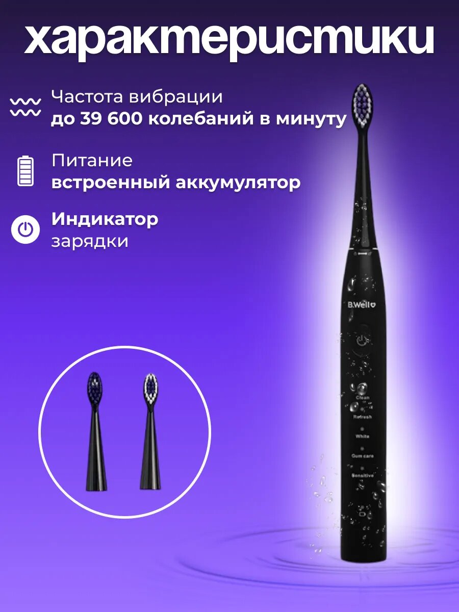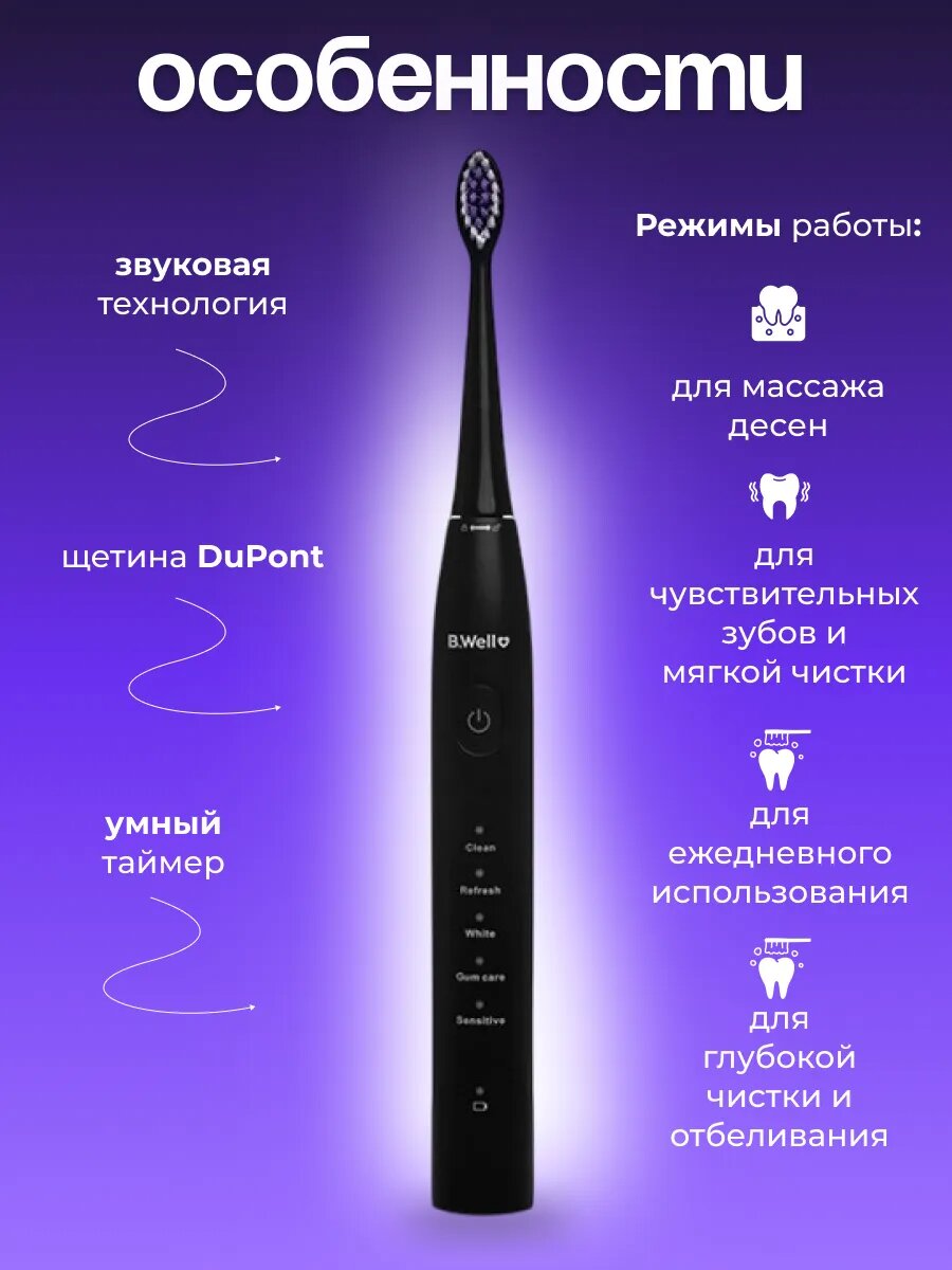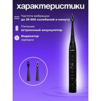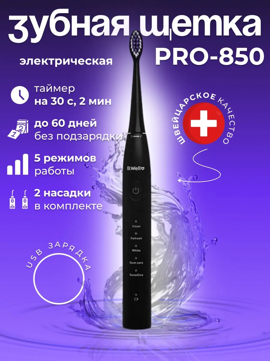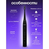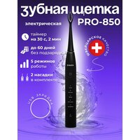 Электрическая звуковая зубная щетка, модель PRO-850 с аккумулятором (5 режимов, в комплекте 2 насадки, кабель usb, сумка для хранения, гигиенический колпачок) (Черная): сравнение цен, характеристики, фото, актуальное наличие и цены.