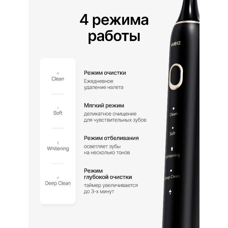 Электрическая звуковая зубная щетка Weiz Moon, черный: сравнение цен, характеристики, фото, актуальное наличие и цены.