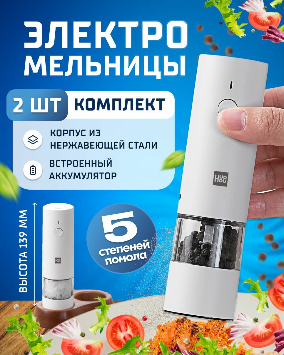 Электрические мельницы для специй с аккумулятором на деревянной подставке в металлическом корпусе HuoHou Electric Mini Grinder Rechargable HU0278: сравнение цен, характеристики, фото, актуальное наличие и цены.