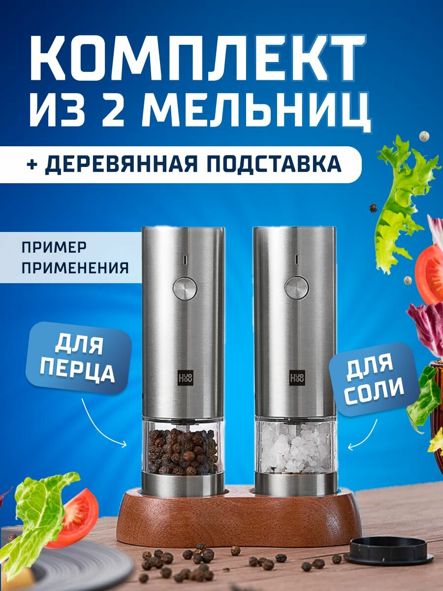Электрические мельницы для специй с аккумулятором на деревянной подставке в металлическом корпусе HuoHou Electric Mini Grinder Rechargable HU0278: сравнение цен, характеристики, фото, актуальное наличие и цены.