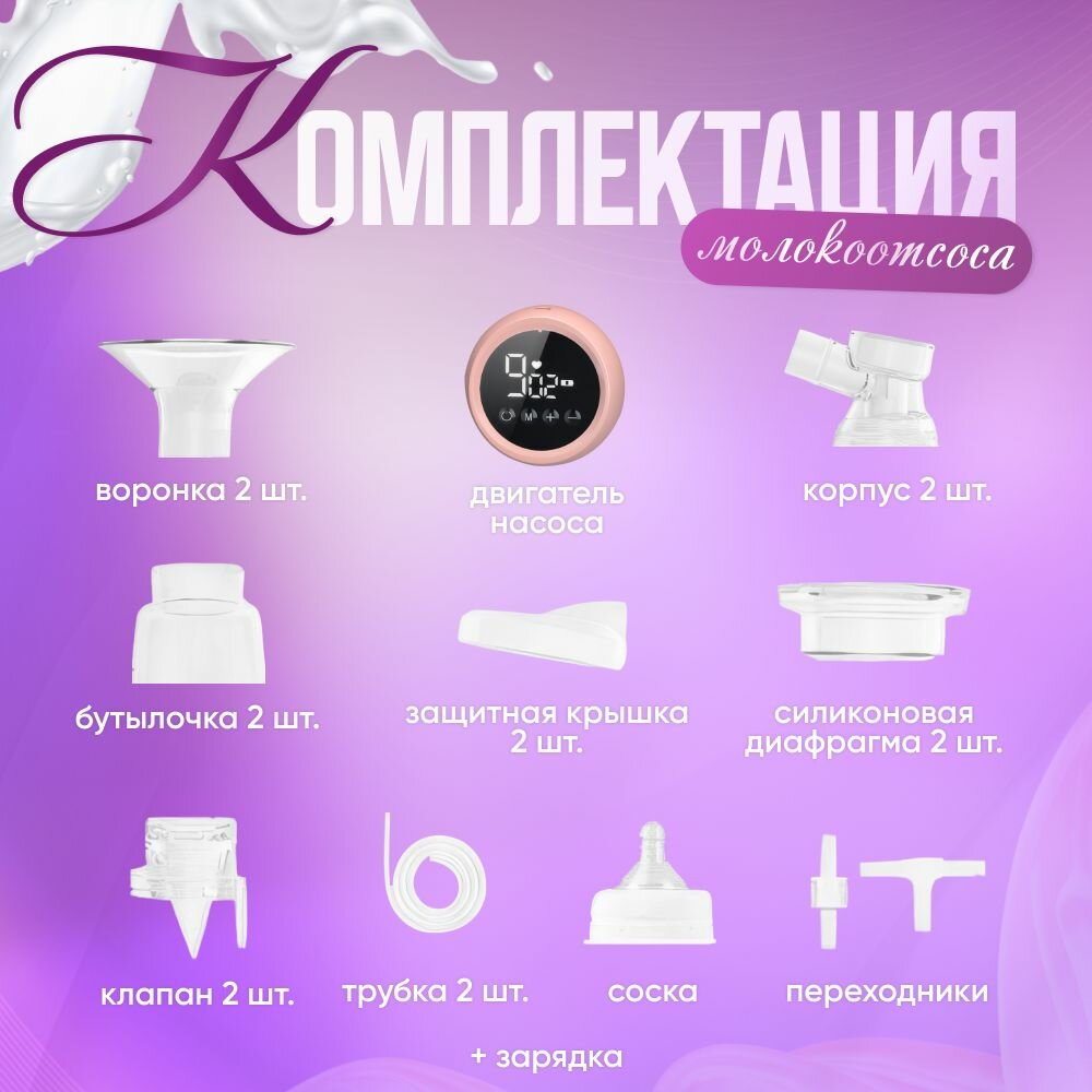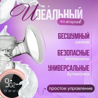 Молокоотсос электрический беспроводной NewLife - это инновационное решение для комфортного сбора и сохранения грудного молока! Максимально удобен в использовании! Очень компактный, Вы всегда можете взять его с собой и использовать в любом месте. Мощный мотор работает от емкого нового встроенного литиевого аккумулятора 1400 мАч (до 3 часов беспрерывной работы), заряжается быстро от всех возможных источников питания через USB кабель на Type C. Молокосос имеет 3 фазы работы: Массаж, Сцеживание и Смешанный режим для самой чувствительной груди. Каждый режим работы имеет по 9 уровней интенсивности. Вы без труда подберете самый комфортный именно для себя. За счет функции массажа и полной имитации сосательных движений ребенка, процесс сцеживания происходит быстро и безболезненно. Помогает при лактостазе и увеличивает лактацию молока. Воронка с силиконовой окантовкой отлично прилегает к груди, создавая безупречный вакуум, имеет универсальный угол охвата и подойдет для всех размеров груди. Молокоотсос имеет удобный сенсорный блок управления с подсветкой, индикатором заряда, таймером и функцией памяти выбранных ранее настроек. Работает тихо (45 дцб), что позволяет использовать его в любое время суток даже, когда рядом спит малыш. Минимум деталей, очень легко разбирать, собирать и помыть. Молокоотсос выполнен из безопасных и гипоаллергенных материалов. Никакого неприятного запаха от пластика. Не содержит Бисфенол А. В комплекте бутылочка 180мл из чистейшего пластика PP (Совместима с другими сосками), молокоотсос, соска из пищевого силикона, кабель USB-Type C, инструкция на русском, все это находится в красивой фирменной упаковке, которая обезопасит транспортировку. Гарантия 1 год.