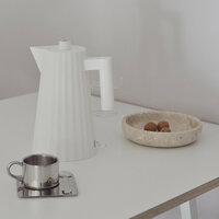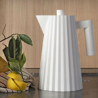 Чайник Plisse от Alessi - его трехмерная поверхность напоминает плиссированную ткань и имеет динамичный скульптурный силуэт. Разработанный Микеле Де Лукки в 2018 году чайник Plisse идеально подходит как для кипячения, так и для подачи горячей воды — благодаря термоизолированному основанию чайник можно безопасно разместить на любой столешнице.