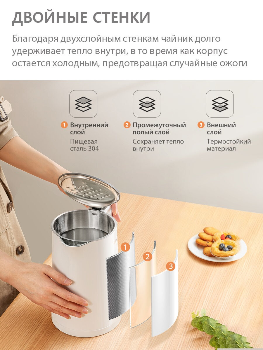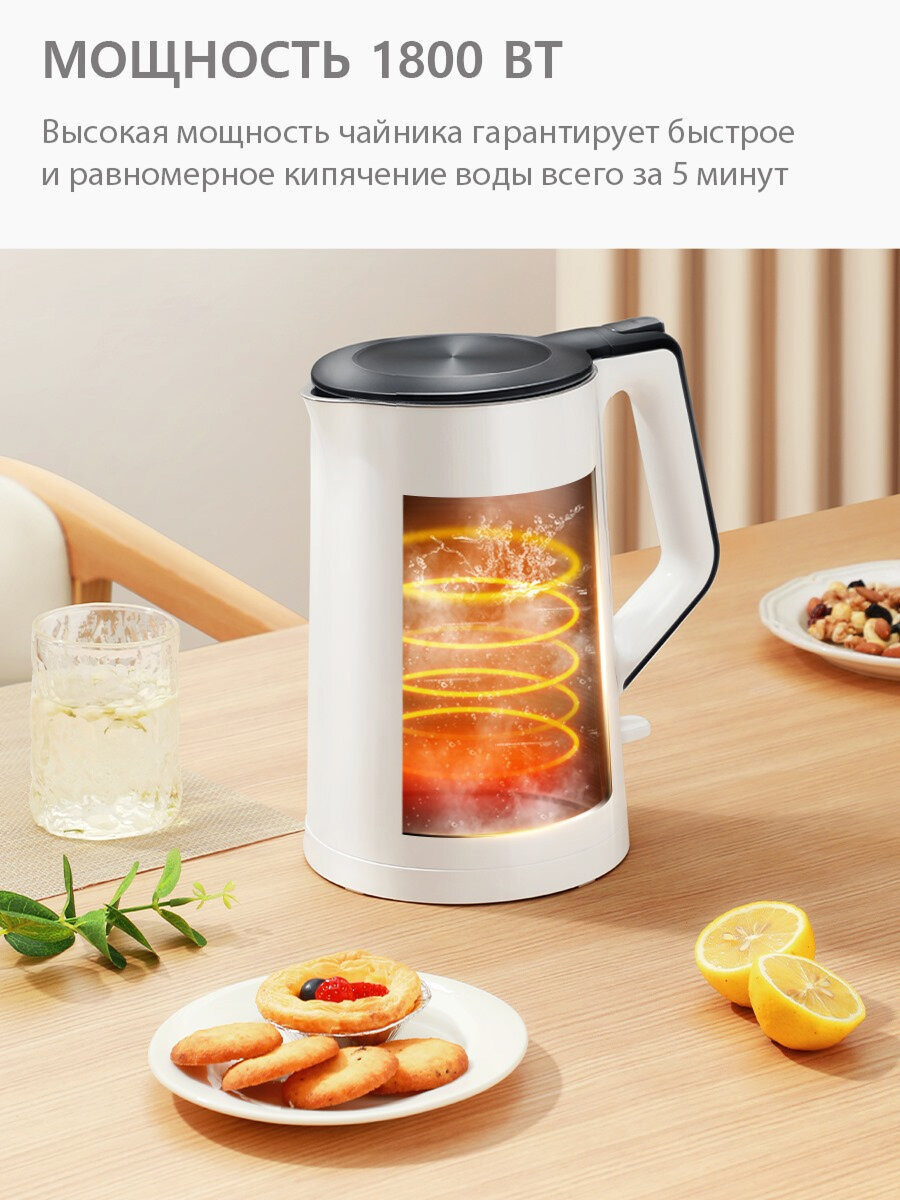 Купить Электрический чайник Comfee CF-KT7074, 1800 Вт, 1.5 Л, двойные стенки, автоотключение, вращение корпуса 360, сталь 304 с доставкой по всей России.