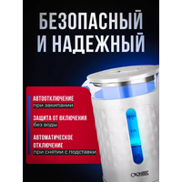 | Особенности | бесшумное закипание, вращение на 360 градусов, двойные стенки, дисплей, заварочный фильтр, заварочный чайник, индикатор уровня воды, индикация включения, сенсорное управление, съемная крышка, фильтр |